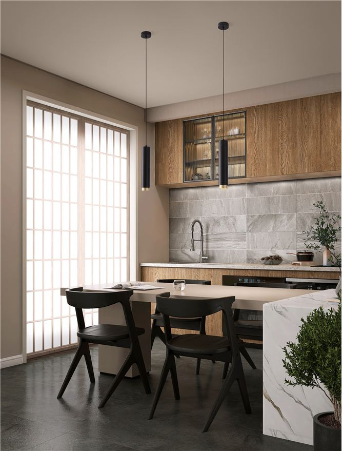 Осветителното тяло 9011407 представлява пендел, спот лампа в съвременен стил. 9011407 е от категорията осветителни тела и е подходящо за осветяване на различни помещения и пространства като: всекидневна / хол, спалня, кухня, трапезария, коридор, антре, офис.