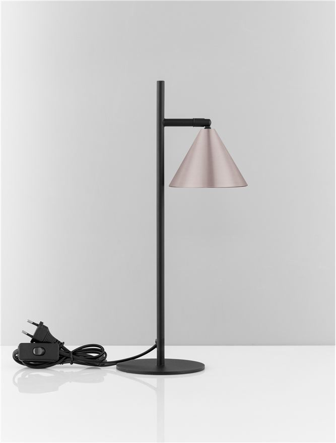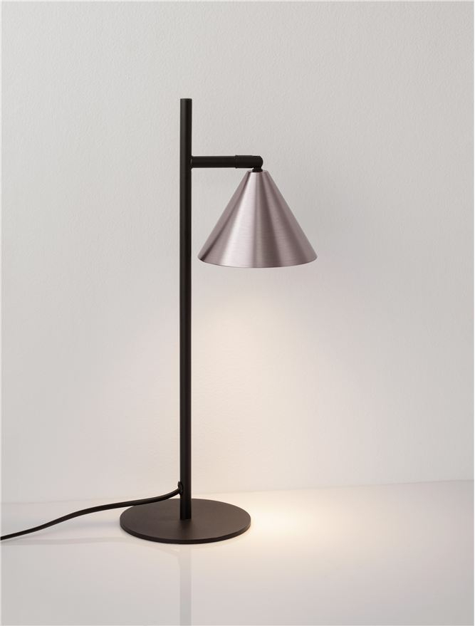 метал в цвят оксидирано кафе, алуминий в черен цвят, захранващ кабел 1.05m с щепсел и превключвател ON/OFF