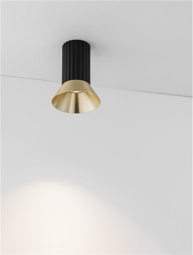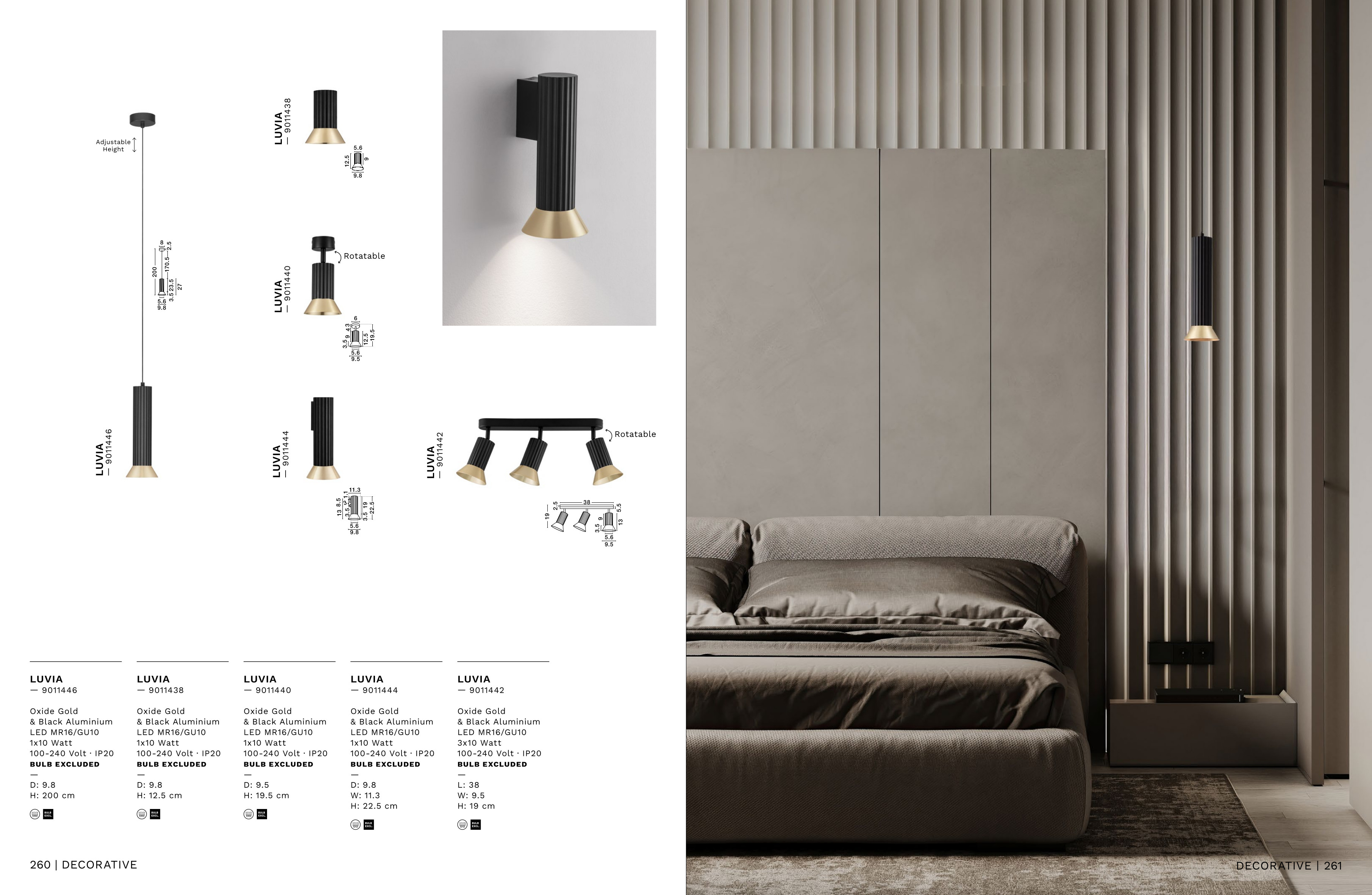 Осветителното тяло 9011438 ще осигури комфорт и естетика във всяко помещение, в което се постави. Цялостната визия и дизайн на лампата и вложените в изработката й материали, като алуминий с покритие с цвят оксидно злато, алуминий в черно, ще допринесат за един неповторим стил. Благодарение на дългогодишния опит, качествените материали и строгия контрол на качеството на изработка на производителя Nova-Luce (Гърция), 9011438 е на високо европейско ниво.