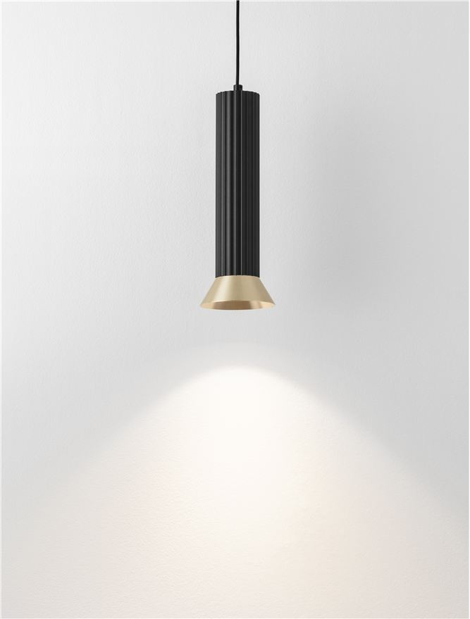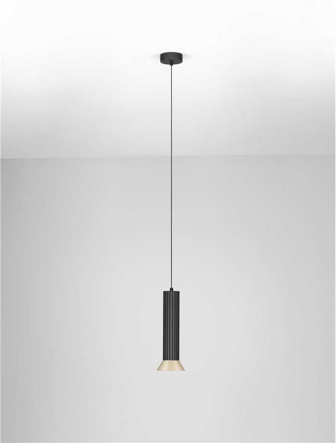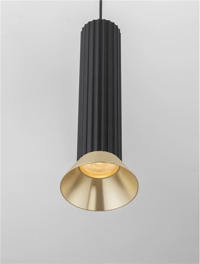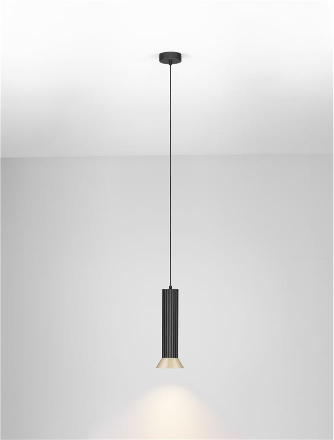 Стилът и естетиката на обстановката ще се обогатят благодарение, както на цялостната визия и дизайн на осветителното тяло, така и на вложените в изработката му, качествени материали, като: алуминий с покритие с цвят оксидно злато, алуминий в черно.