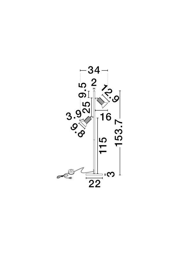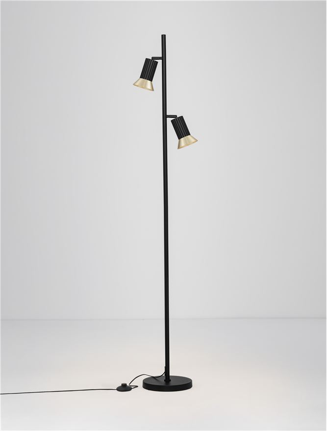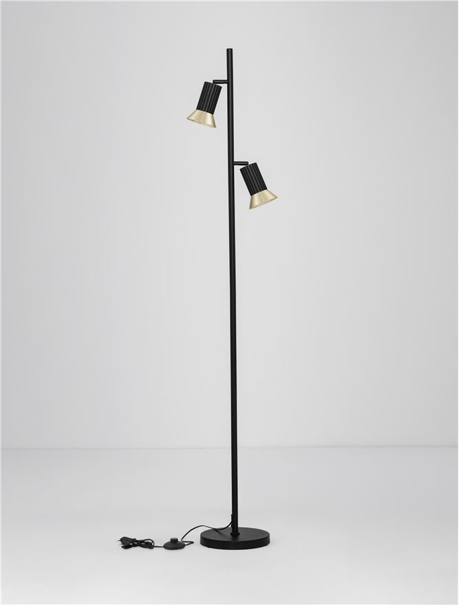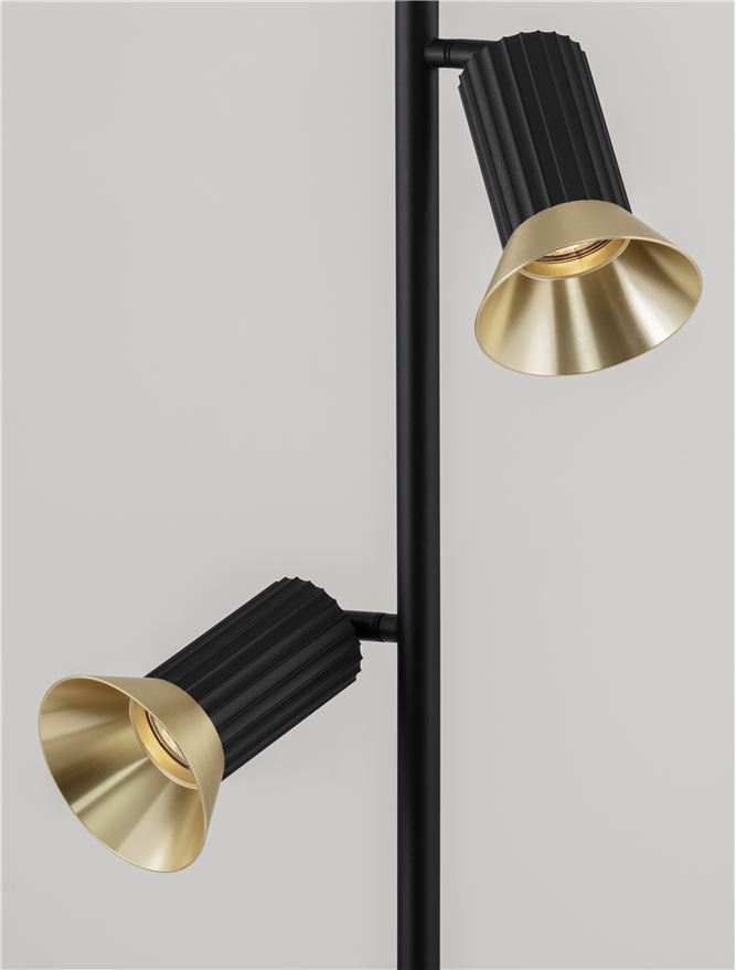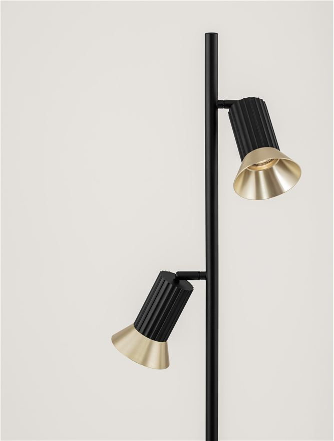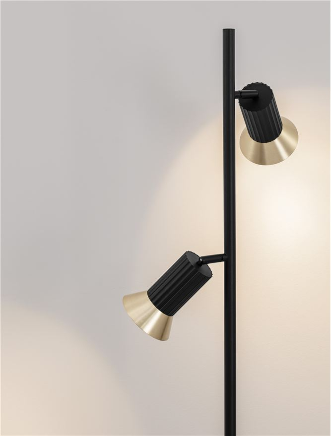 алуминий с покритие с цвят оксидно злато, алуминий в черно, захранващ кабел 1.5m с щепсел и превключвател ON/OFF