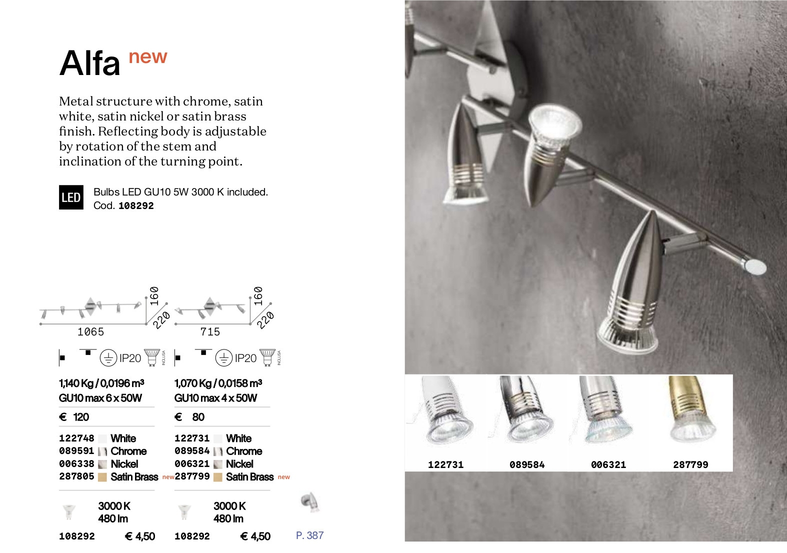 Осветителното тяло ^ALFA PL6 OTTONE SATINATO представлява спот лампа в съвременен стил. ^ALFA PL6 OTTONE SATINATO е от категорията осветителни тела и е подходящо за осветяване на различни помещения и пространства като: всекидневна / хол, спалня, кухня, трапезария, коридор, антре, стълбище, офис.