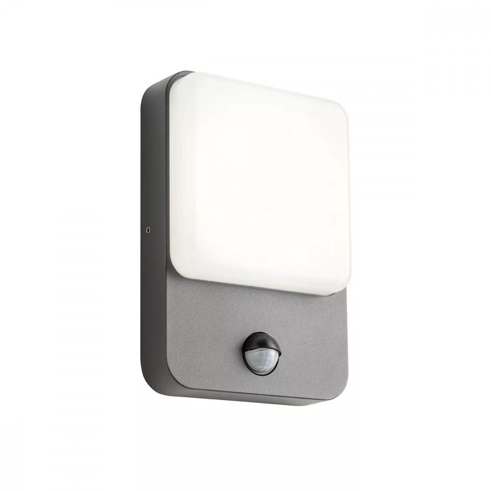 алуминий отлят под налягане с електростатично покритие в пясъчно тъмно сив цвят, дифузер от полимер в опалово бяло, сензор за движение