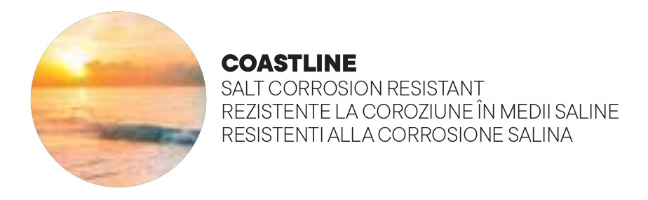 Стилът и естетиката на обстановката ще бъдат облагородени, както от цялостната визия и дизайн на осветителното тяло, така и от вложените в изработката на лампата висококачествени материали, като: полимер (ABS) в тъмно сив цвят, дифузьори от прозрачен поликарбонат, корпусът е устойчив на солена (морска) корозия.