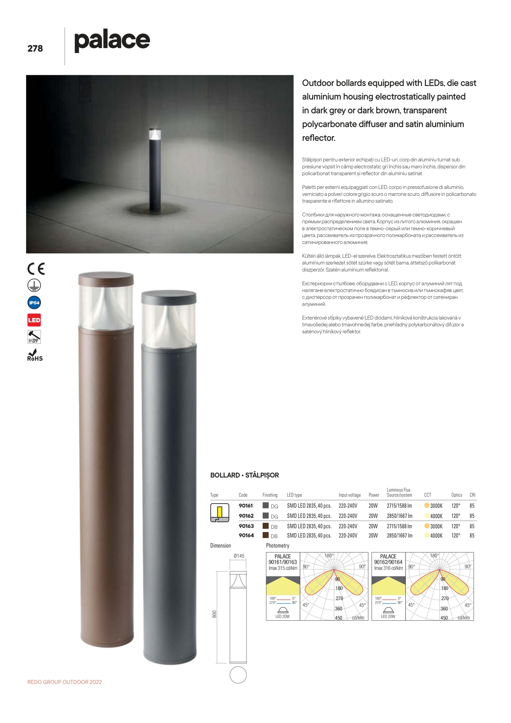 Лед външна лампа 90161 ще осигури комфорт и естетика във всяко помещение, в което се постави. Цялостната визия и дизайн на led лампата и вложените в изработката й материали, като алуминий лят под налягане в тъмно сив цвят, дисперсор от прозрачен поликарбонат, рефлектор от сатениран алуминий, ще допринесат за един неповторим стил. Благодарение на дългогодишния опит в производството на лед осветление, качествените материали и строгия контрол на качеството на изработка на дизайнерската линия Redo Outdoor на производителя Redo (Румъния), 90161 е на високо европейско ниво.
