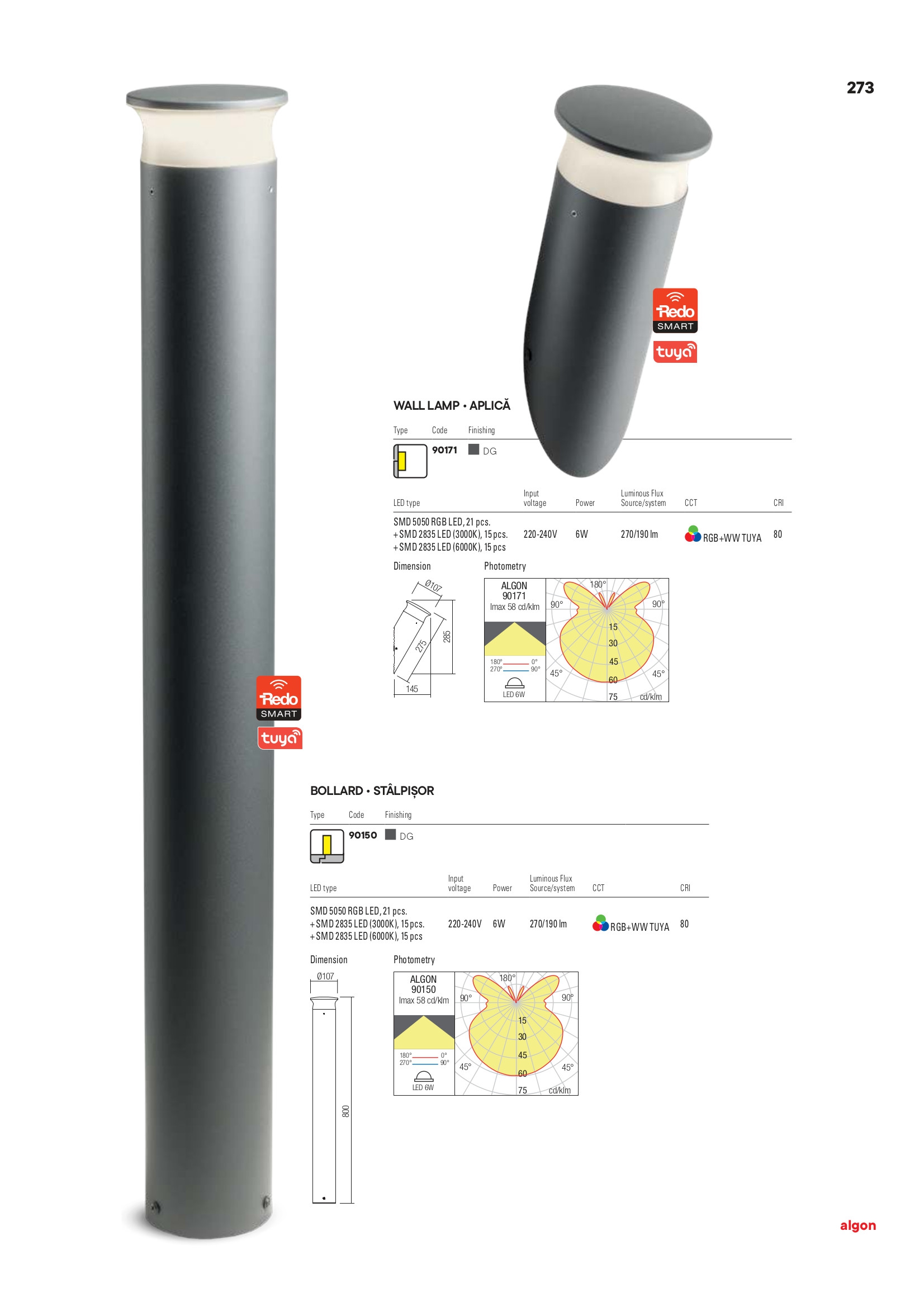 Лед аплик, външна лампа 90171 ще осигури комфорт и естетика във всяко помещение, в което се постави. Цялостната визия и дизайн на led лампата и вложените в изработката й материали, като алуминий с тъмно сиво покритие, нанесено електростатично, дифузьор от полимер в цвят бял опал, SMD RGB светодиоди и система за управление TUYA за управление на интензитета и цветността на светлината, ще допринесат за един неповторим стил. Благодарение на дългогодишния опит в производството на лед осветление, качествените материали и строгия контрол на качеството на изработка на дизайнерската линия Redo Outdoor на производителя Redo (Румъния), 90171 е на високо европейско ниво.