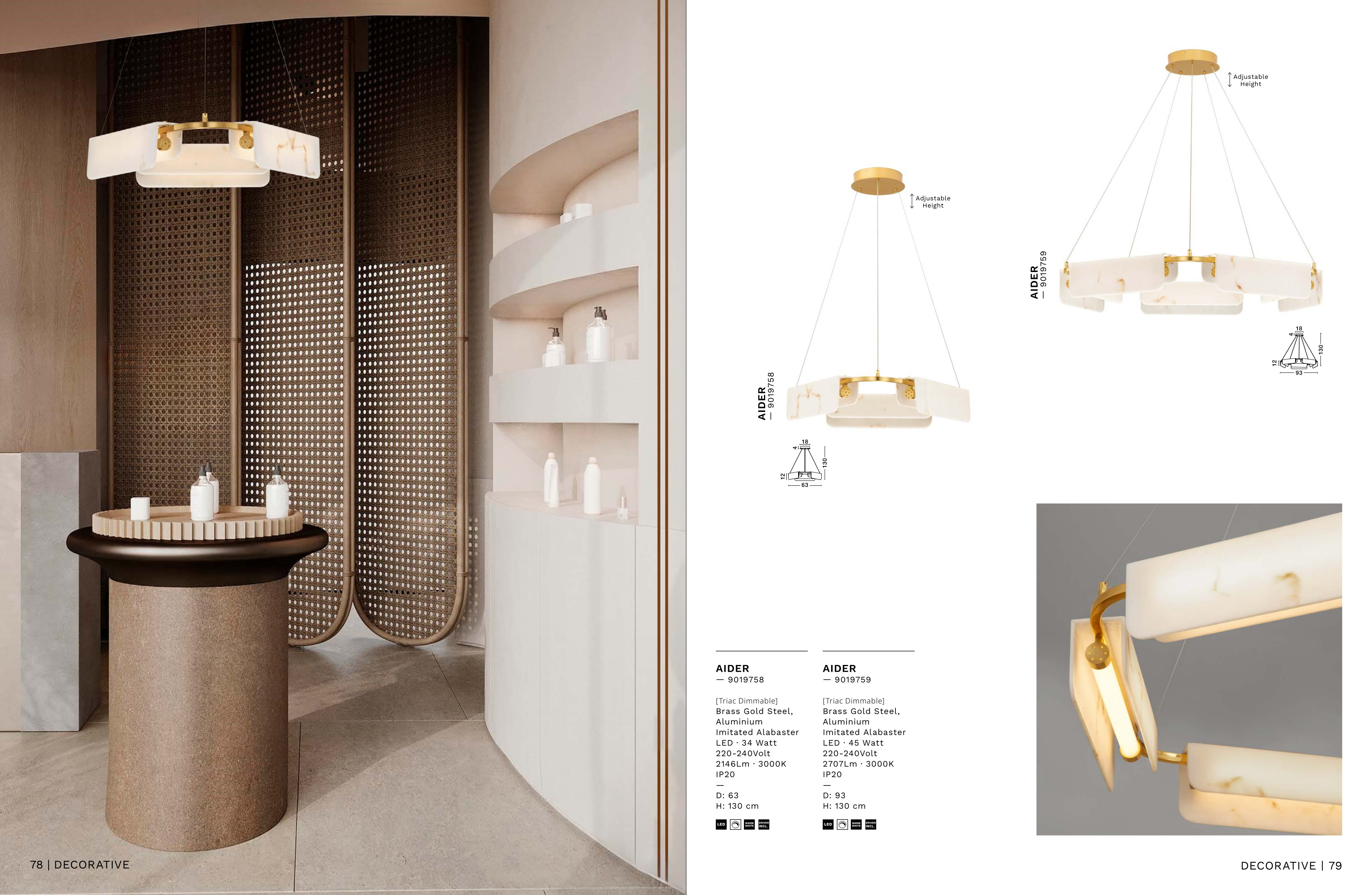 Лед полилей 9019758 ще осигури комфорт и естетика във всяко помещение, в което се постави. Цялостната визия и дизайн на led лампата и вложените в изработката й материали, като стомана и алуминий в цвят златен месинг, полимер имитиращ алабастър, ще допринесат за един неповторим стил. Благодарение на дългогодишния опит в производството на лед осветление, качествените материали и строгия контрол на качеството на изработка на производителя Nova-Luce (Гърция), 9019758 е на високо европейско ниво.