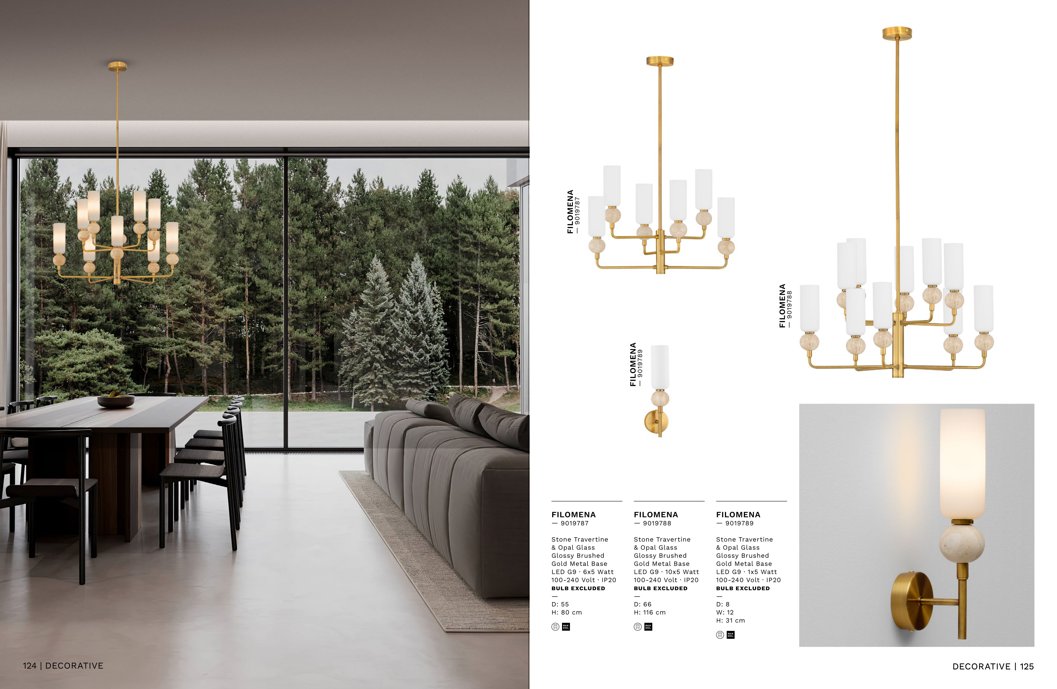 Осветителното тяло 9019787 ще осигури комфорт и естетика във всяко помещение, в което се постави. Цялостната визия и дизайн на лампата и вложените в изработката й материали, като камък травертин, стъкло в цвят опал, метал с покритие с цвят гланцово матирано злато, ще допринесат за един неповторим стил. Благодарение на дългогодишния опит, качествените материали и строгия контрол на качеството на изработка на производителя Nova-Luce (Гърция), 9019787 е на високо европейско ниво.