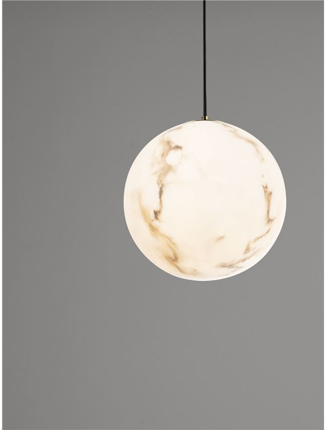 Стилът и естетиката на обстановката ще се обогатят благодарение, както на цялостната визия и дизайн на осветителното тяло, така и на вложените в изработката му, качествени материали, като: имитация на алабастър в бяло, стомана в цвят златен месинг.