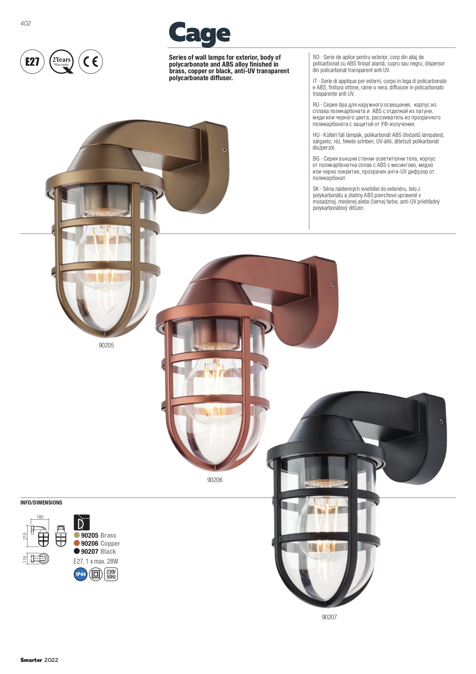 Осветителното тяло 90205 ще осигури комфорт и естетика във всяко помещение, в което се постави. Цялостната визия и дизайн на лампата и вложените в изработката й материали, като полимер (ABS) с месингово покритие, прозрачен поликарбонат с UV филтър, ще допринесат за един неповторим стил. Благодарение на дългогодишния опит, качествените материали и строгия контрол на качеството на изработка на дизайнерската линия Redo Smarter на производителя Redo (Румъния), 90205 е на високо европейско ниво.