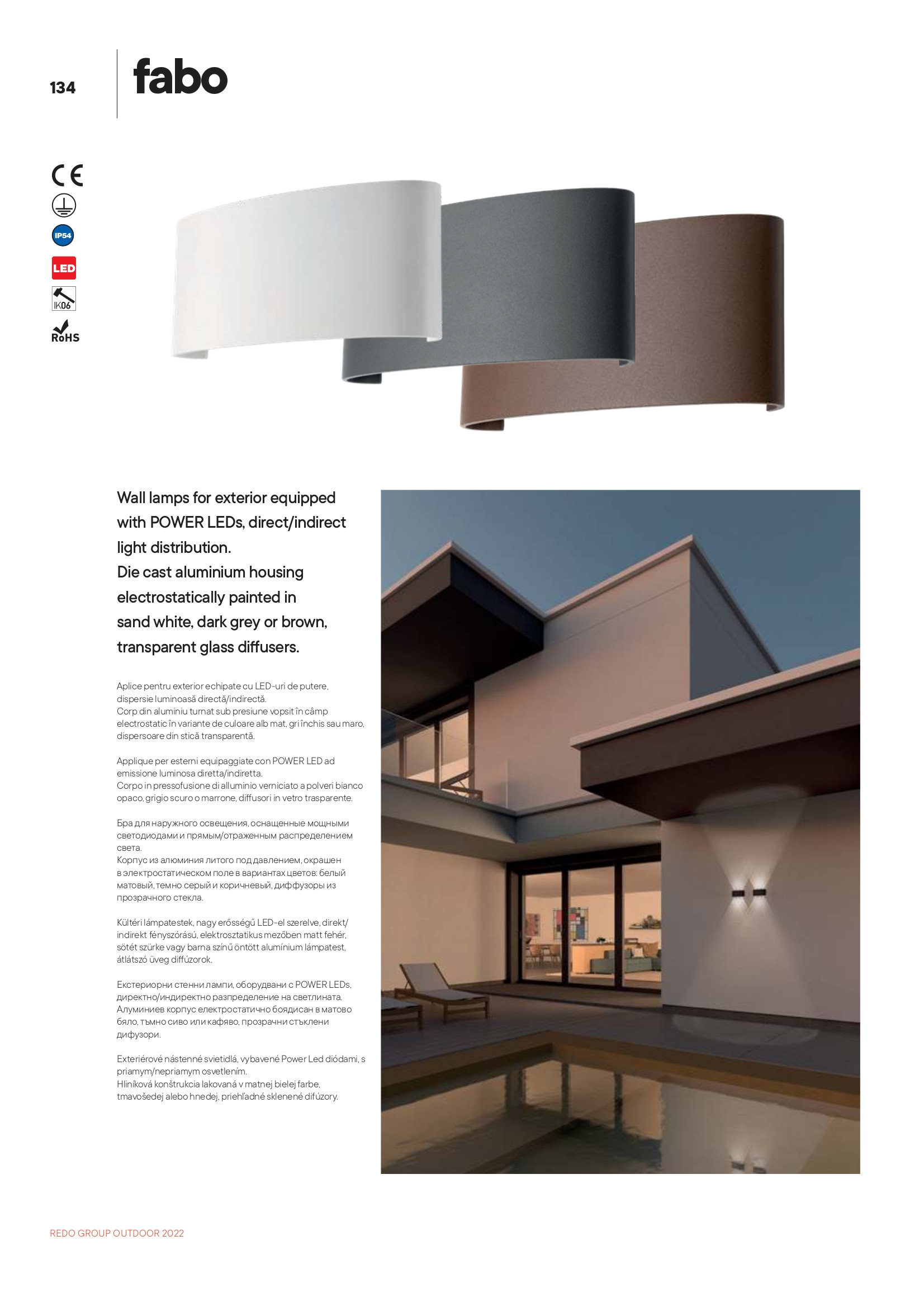 Осветителното тяло 90227 ще осигури комфорт и естетика във всяко помещение, в което се постави. Цялостната визия и дизайн на лампата и вложените в изработката й материали, като алуминий в тъмно кафяв цвят, прозрачни стъклени дифузери, ще допринесат за един неповторим стил. Благодарение на дългогодишния опит, качествените материали и строгия контрол на качеството на изработка на дизайнерската линия Redo Outdoor на производителя Redo (Румъния), 90227 е на високо европейско ниво.