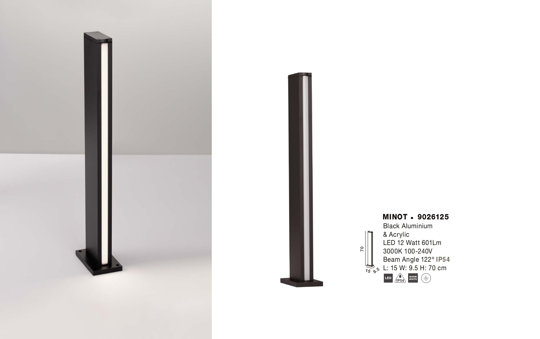 Осветителното тяло 9026125 представлява външна лампа в съвременен стил. 9026125 е от категорията осветителни тела и е подходящо за осветяване на различни помещения и пространства като: градинско осветление, външно осветление.