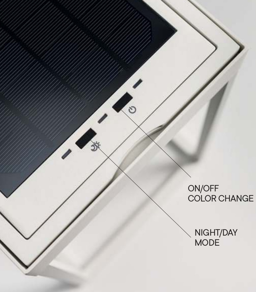 лят алуминий в матово бяло, прозрачен полимер, ключ ON/OFF, димер 5-100% с памет, промяна на цветната температура 2700-3000K, хибридно зареждане - соларен панел и Li-ion батерия 2 х 2200mA, микро USB порт, адаптер 100-240VAC/5VDC, 1A с кабел 1.5m