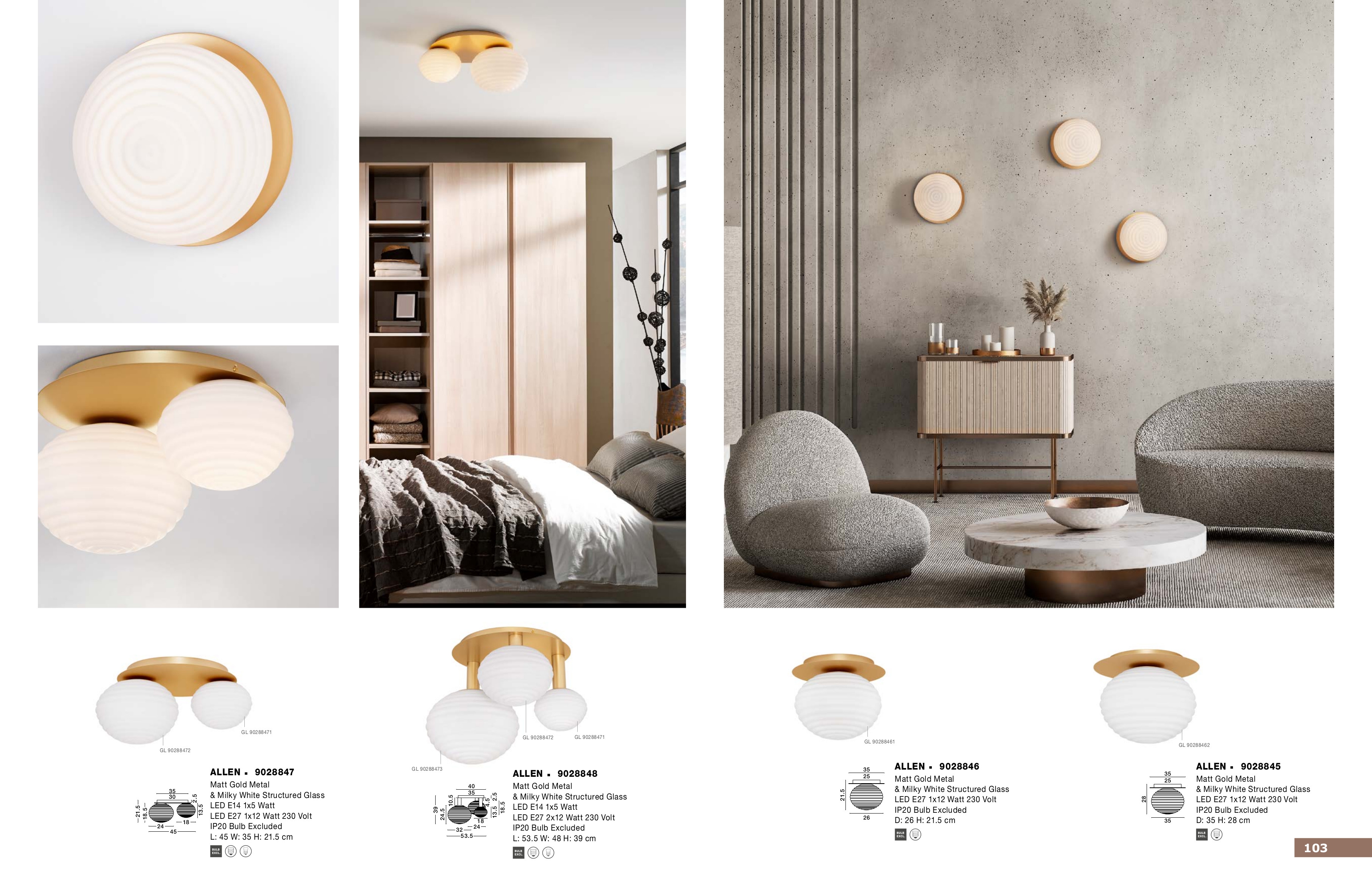Осветителното тяло 9028847 ще осигури комфорт и естетика във всяко помещение, в което се постави. Цялостната визия и дизайн на лампата и вложените в изработката й материали, като метал в цвят матово злато, дифузер от млечно бяло структурирано стъкло, ще допринесат за един неповторим стил. Благодарение на дългогодишния опит, качествените материали и строгия контрол на качеството на изработка на производителя Nova-Luce (Гърция), 9028847 е на високо европейско ниво.