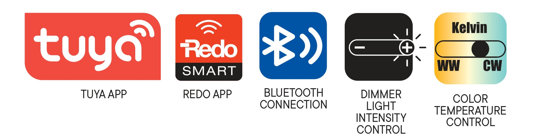 стабилизиран полимер (ABS), устойчив на UV лъчи и морска (солена) корозия, дифузер от опалово бял полимер, системата TUYA регулира ON/OFF, интензитета на светлината 10-100%, цветната температура от топло до студено бяло, програмиране времето на работа