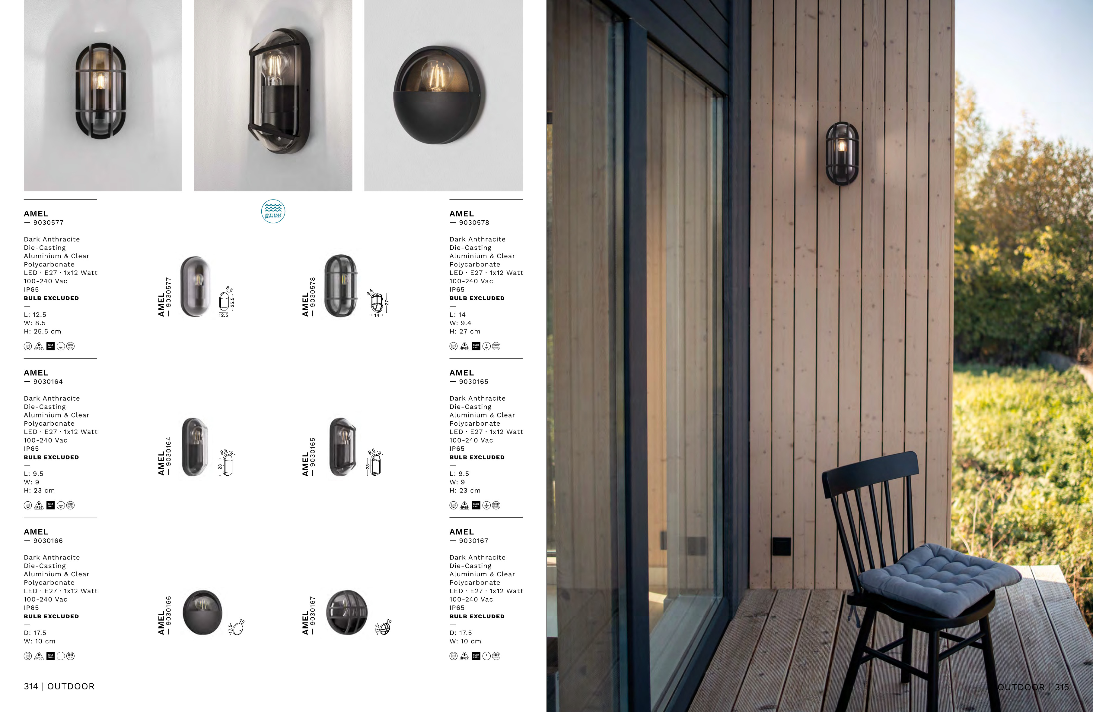 Стилът и естетиката на обстановката ще бъдат облагородени, както от цялостната визия и дизайн на осветителното тяло, така и от вложените в изработката на лампата висококачествени материали, като: алуминий отлят под налягане в цвят тъмен антрацит, прозрачен поликарбонат.