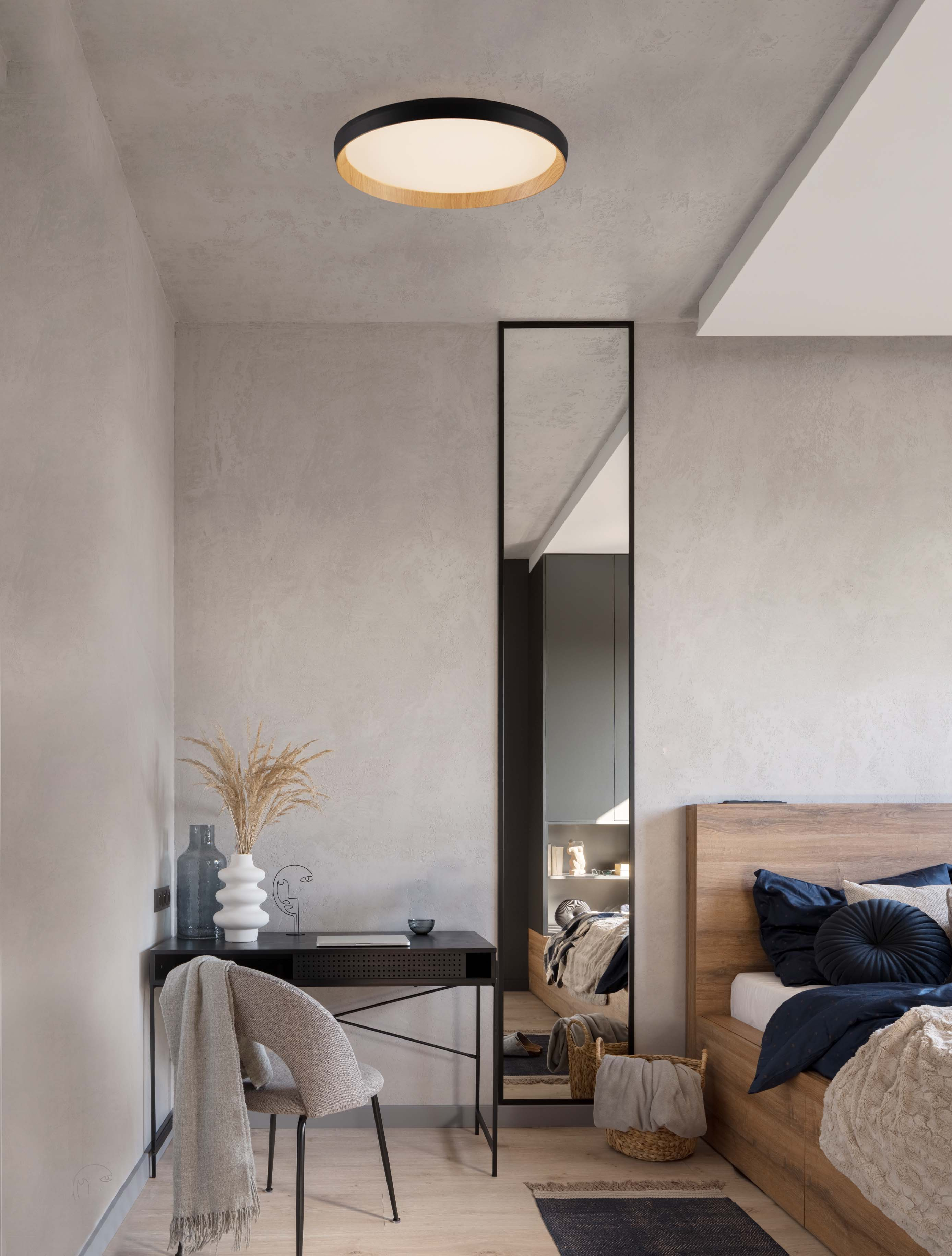 метал и алуминий в пясъчно черен цвят и в цвят светло дърво, полимер в бяло, интегриран ССТ превключвател 2700-3000K