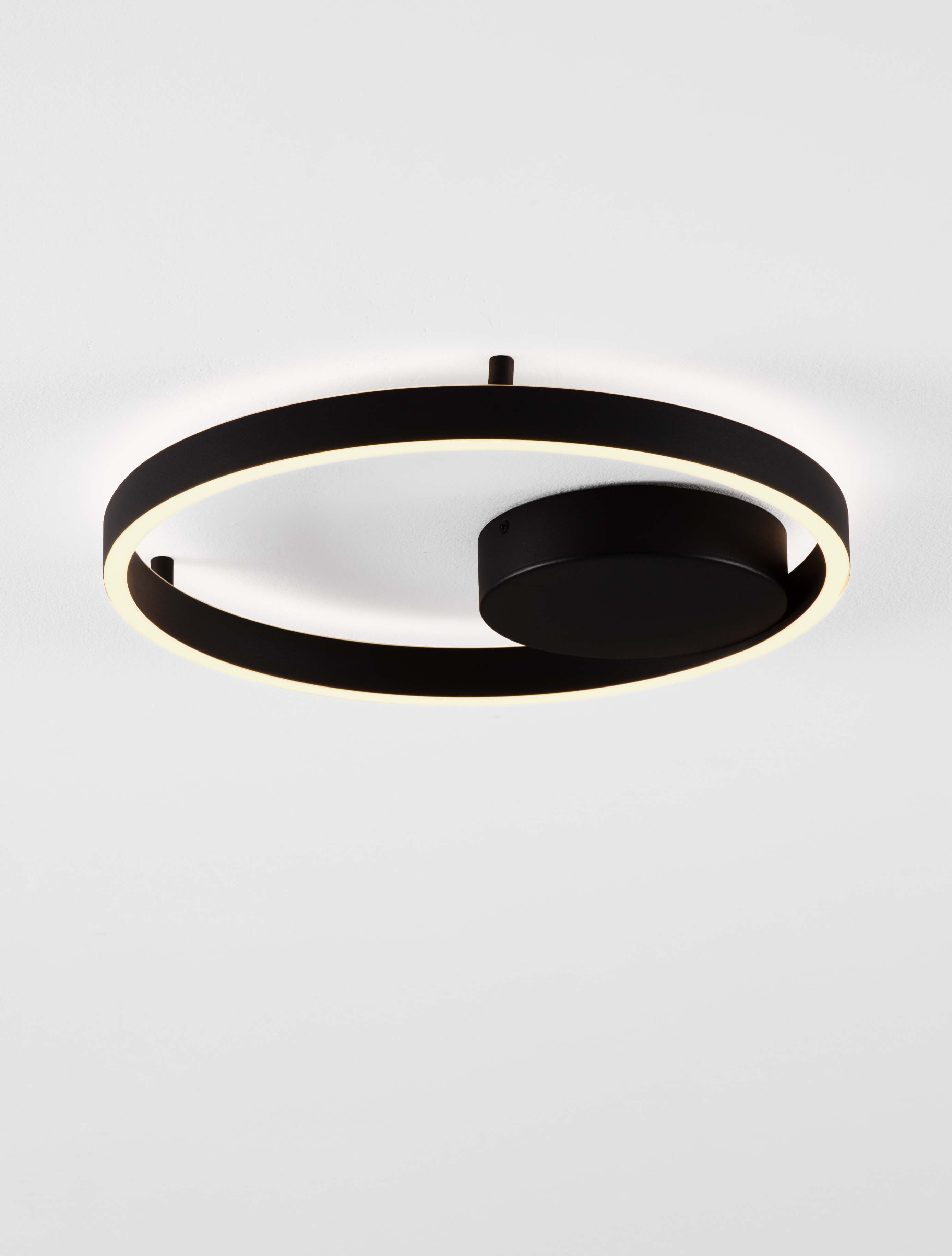 метал и алуминий в пясъчно черно, полимер в бяло, директна и индиректна светлина, димиране с триак