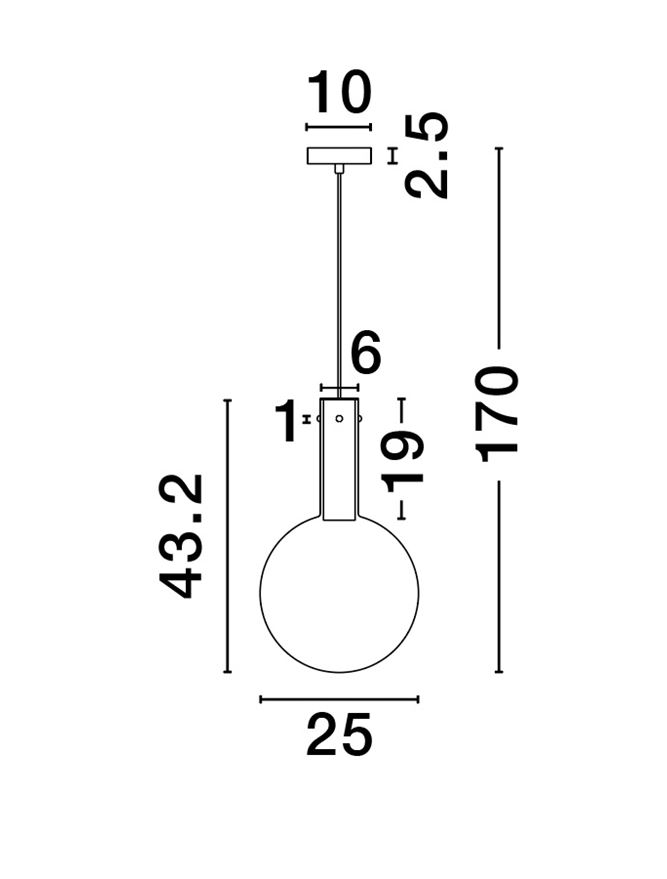 Ел. мощност 1 х 6 W Размери Ф25см x 170см Производител Nova-Luce, Гърция