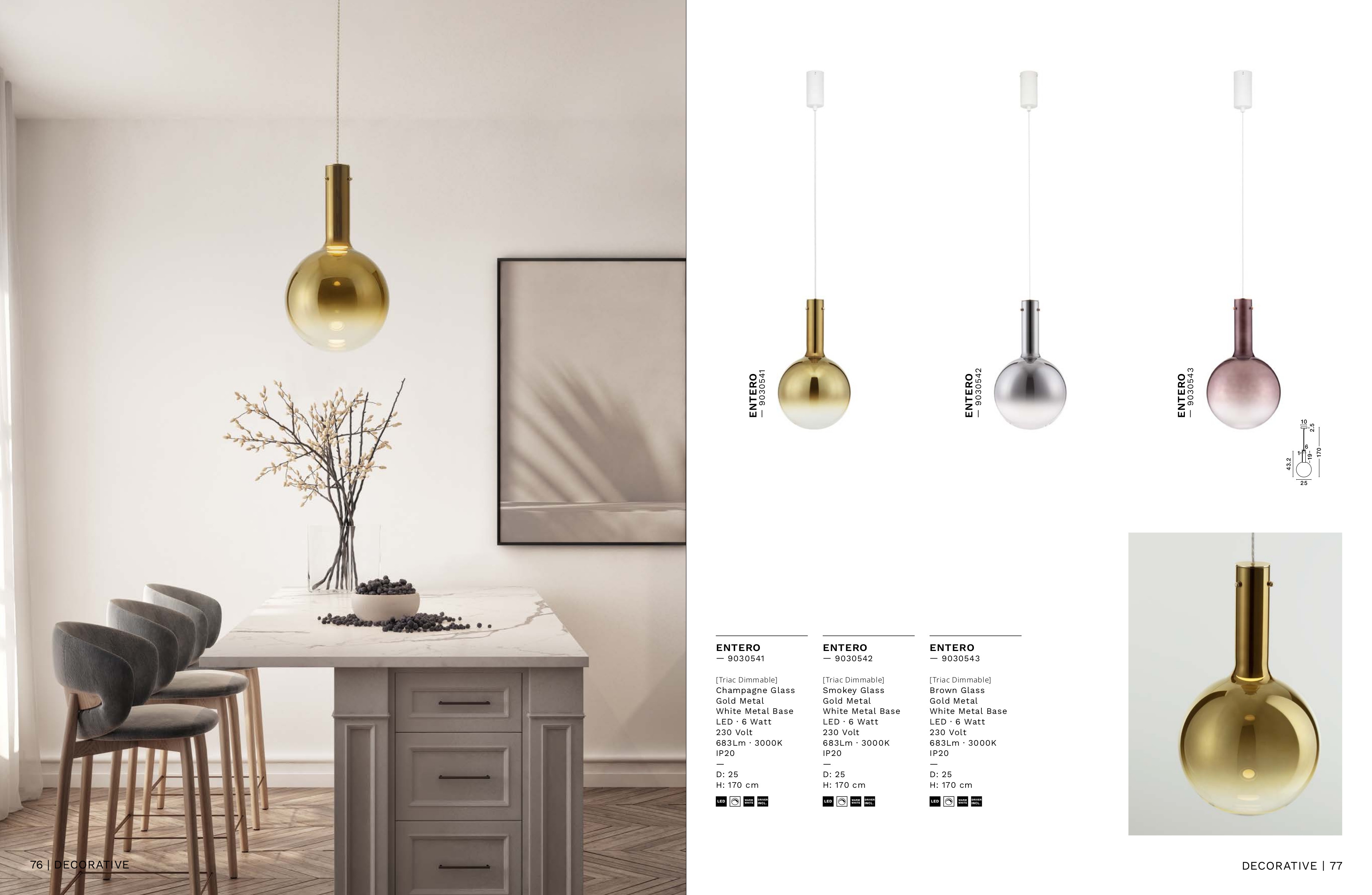 Лед пендел 9030541 ще осигури комфорт и естетика във всяко помещение, в което се постави. Цялостната визия и дизайн на led лампата и вложените в изработката й материали, като стъкло градиентно оцветено в цвят шампанско, метал в цвят злато, метал в бял цвят, ще допринесат за един неповторим стил. Благодарение на дългогодишния опит в производството на лед осветление, качествените материали и строгия контрол на качеството на изработка на производителя Nova-Luce (Гърция), 9030541 е на високо европейско ниво.