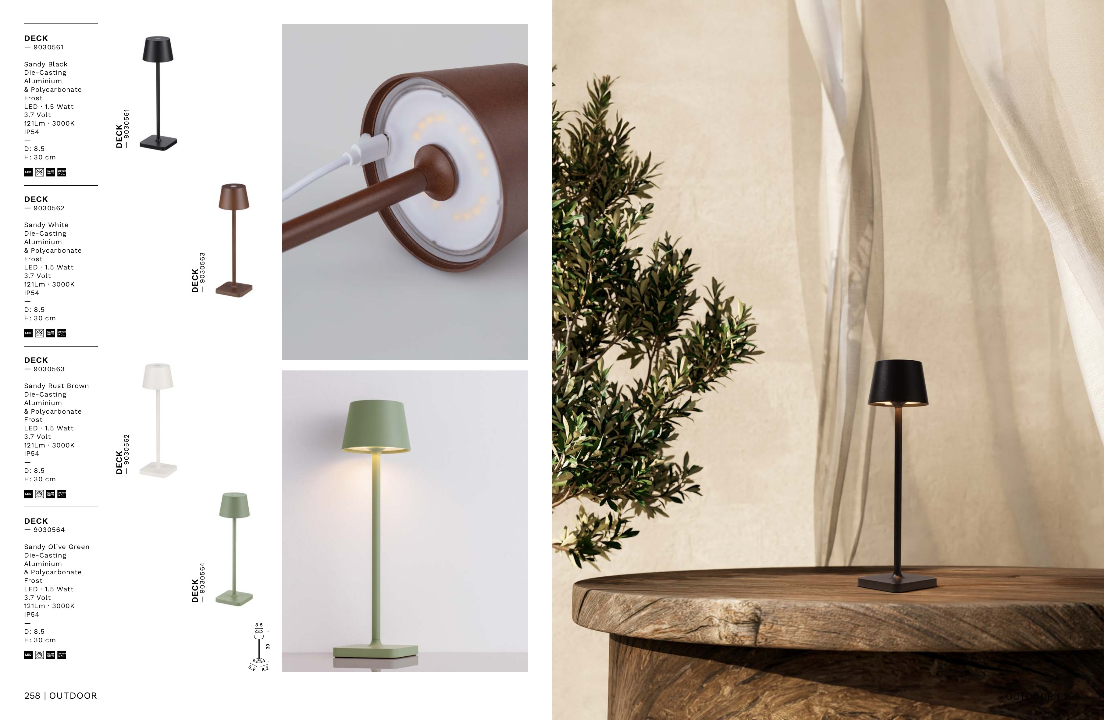 Осветителното тяло 9030564 представлява настолна лампа, външна лампа в съвременен стил. 9030564 е от категорията осветителни тела и е подходящо за осветяване на различни помещения и пространства като: градинско осветление, външно осветление.