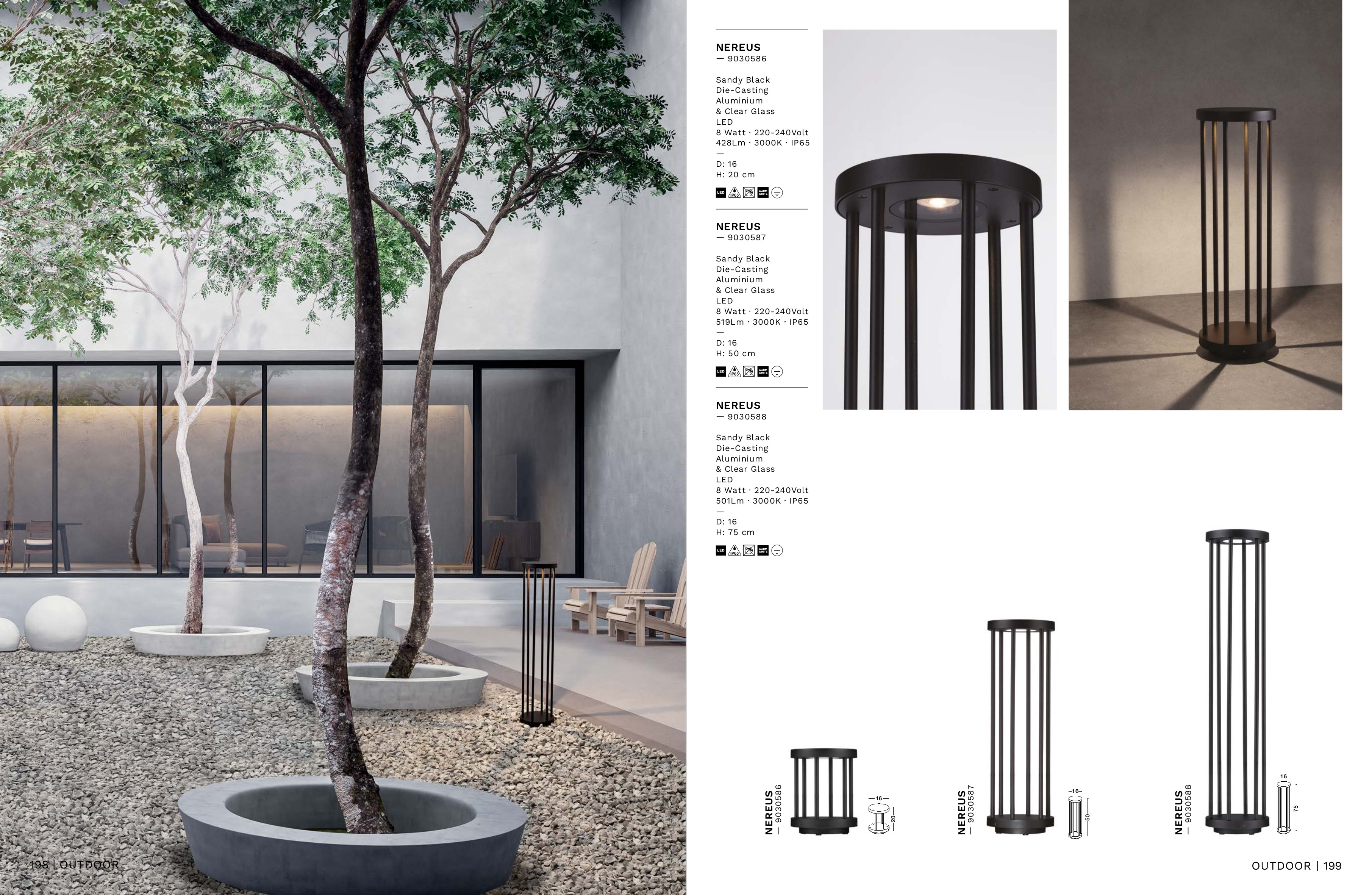 Осветителното тяло 9030586 представлява външна лампа в съвременен стил. 9030586 е от категорията осветителни тела и е подходящо за осветяване на различни помещения и пространства като: градинско осветление, външно осветление.