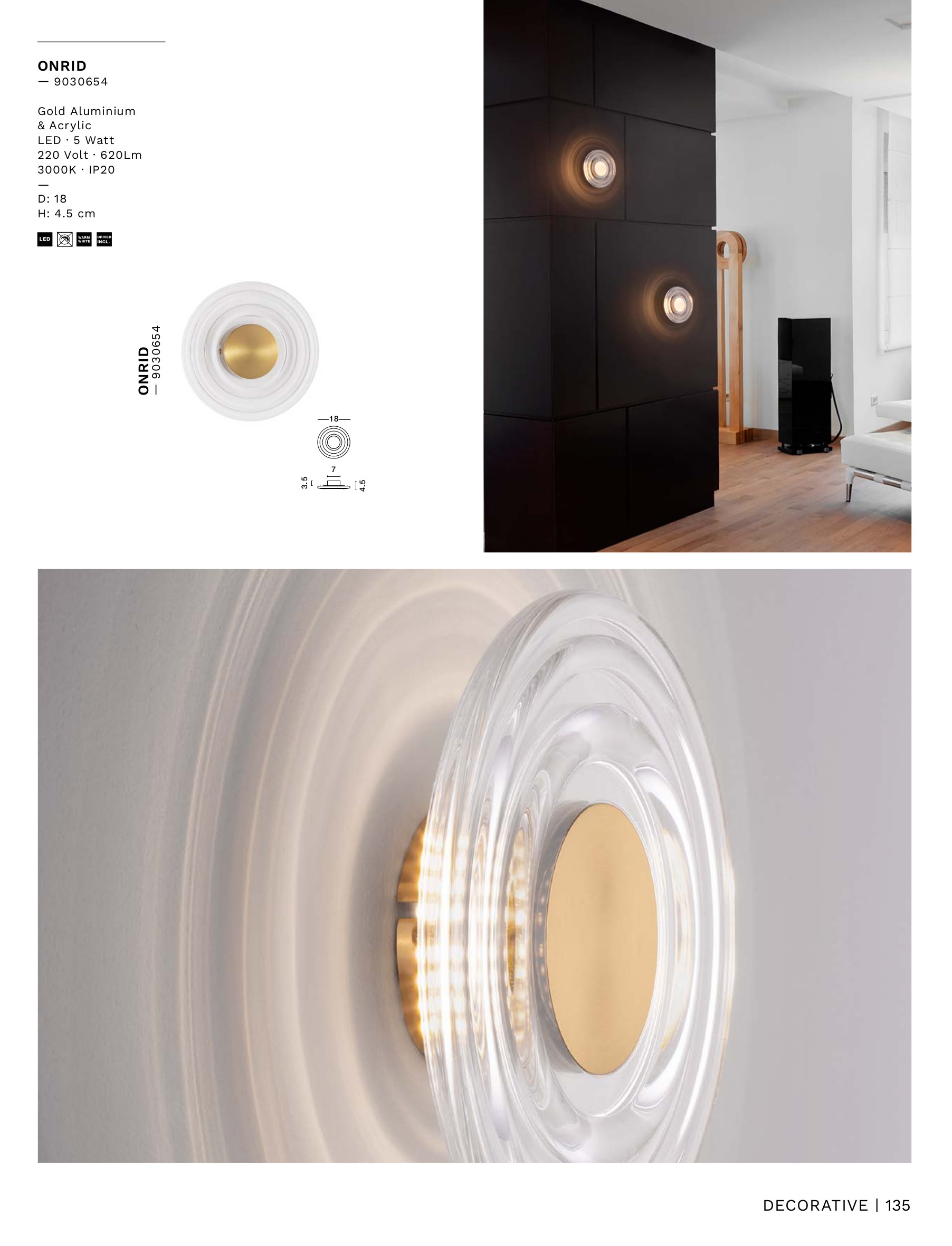 Осветителното тяло 9030654 представлява лед аплик в съвременен, дизайнерски стил. 9030654 е от категорията и е подходящо за осветяване на различни помещения и пространства като: всекидневна / хол, спалня, кухня, трапезария, коридор, антре, стълбище, офис.