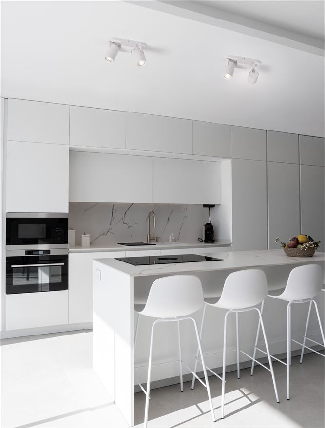 За стила, хармонията и естетиката на обстановката допринасят, както цялостната визия и дизайн на осветителното тяло, така и вложените в изработката качествени материали, като: алуминий в матово бял цвят.