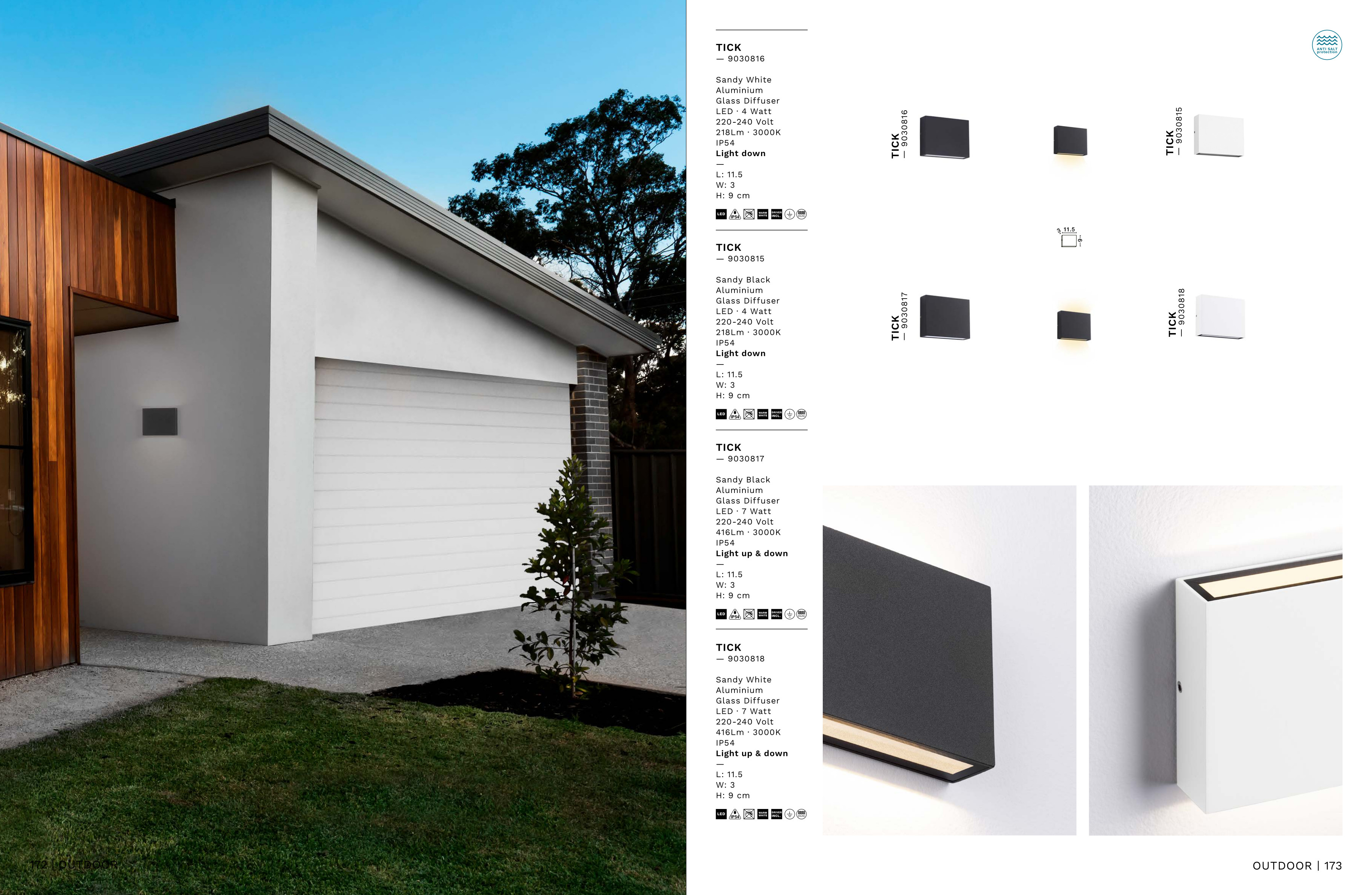 Осветителното тяло 9030815 представлява аплик, външна лампа в съвременен стил. 9030815 е от категорията осветителни тела и е подходящо за осветяване на различни помещения и пространства като: външно осветление, фасадно осветление.