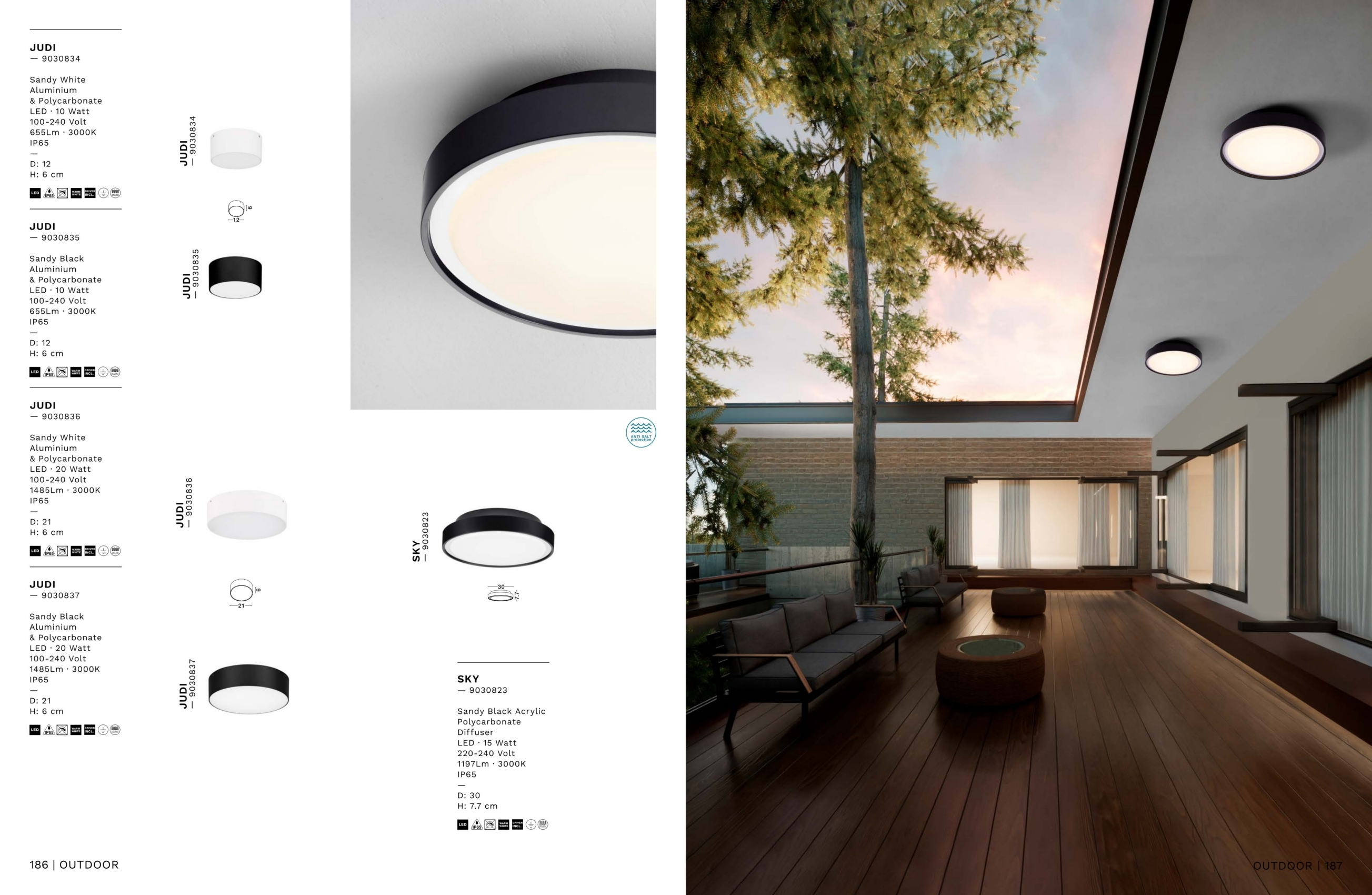 Осветителното тяло 9030823 представлява плафон, външна лампа в съвременен стил. 9030823 е от категорията осветителни тела и е подходящо за осветяване на различни помещения и пространства като: външно осветление, фасадно осветление.