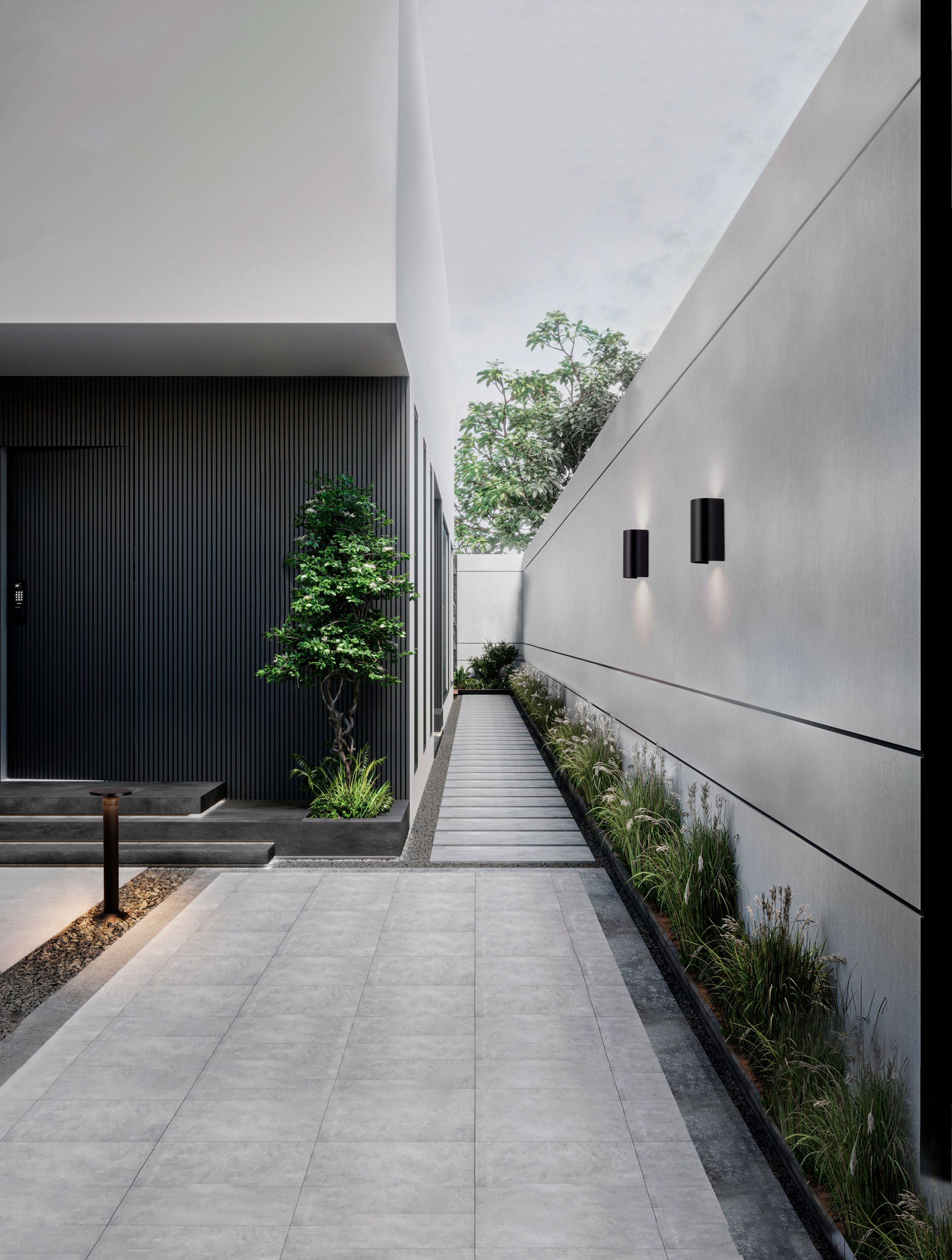 Осветителното тяло 9030830 представлява аплик, външна лампа в съвременен стил. 9030830 е от категорията осветителни тела и е подходящо за осветяване на различни помещения и пространства като: външно осветление, фасадно осветление.