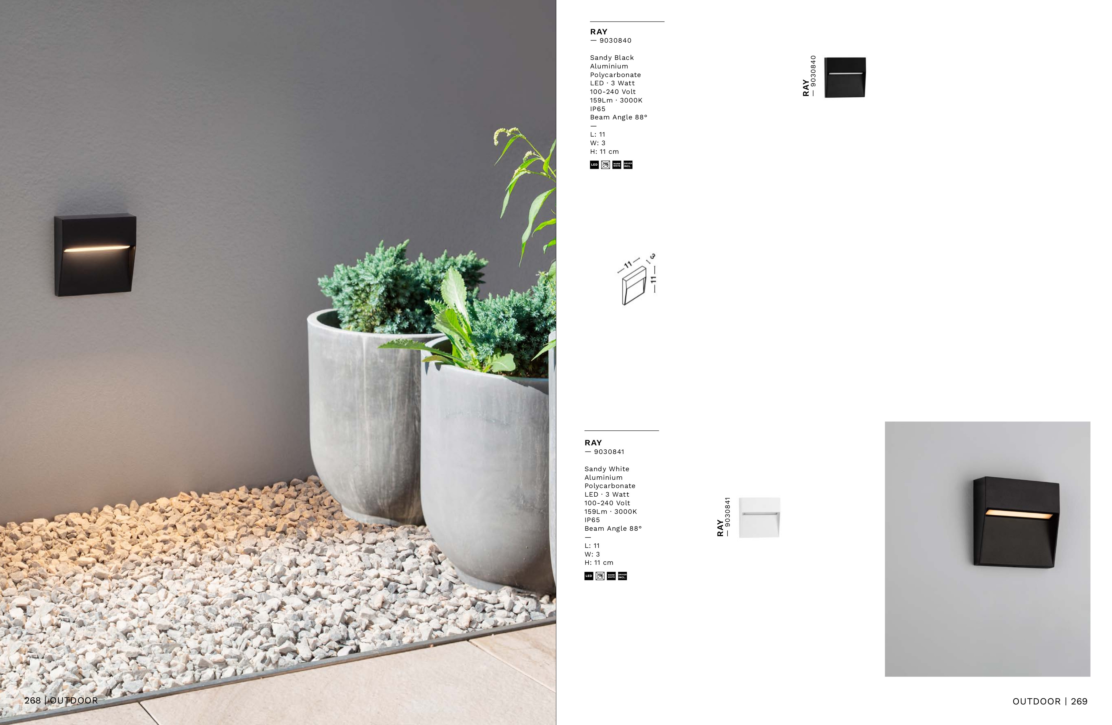 Осветителното тяло 9030841 представлява аплик, външна лампа в съвременен стил. 9030841 е от категорията осветителни тела и е подходящо за осветяване на различни помещения и пространства като: външно осветление, фасадно осветление.