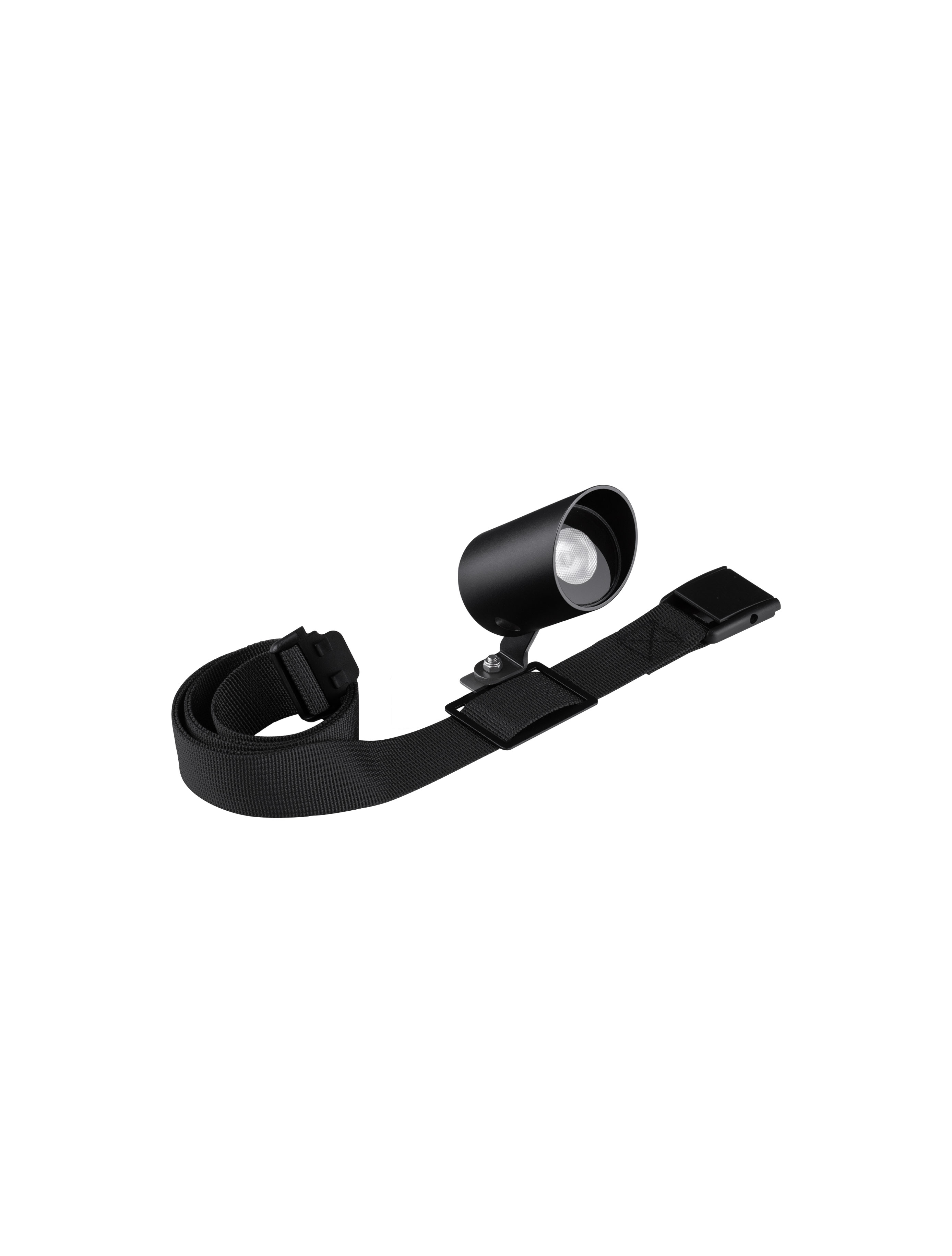 алуминий в цвят пясъчно черно, колан от полимер, с който лампата може да се постави на ствола на дърво, 24 VDC