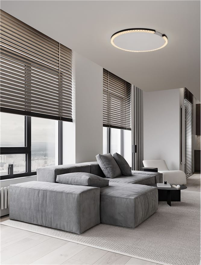 Лед плафон 9030965 ще осигури комфорт и естетика във всяко помещение, в което се постави. Цялостната визия и дизайн на led лампата и вложените в изработката й материали, като алуминий в цвят пясъчно черно, призматични лещи, ще допринесат за един неповторим стил. Благодарение на дългогодишния опит в производството на лед осветление, качествените материали и строгия контрол на качеството на изработка на производителя Nova-Luce (Гърция), 9030965 е на високо европейско ниво.