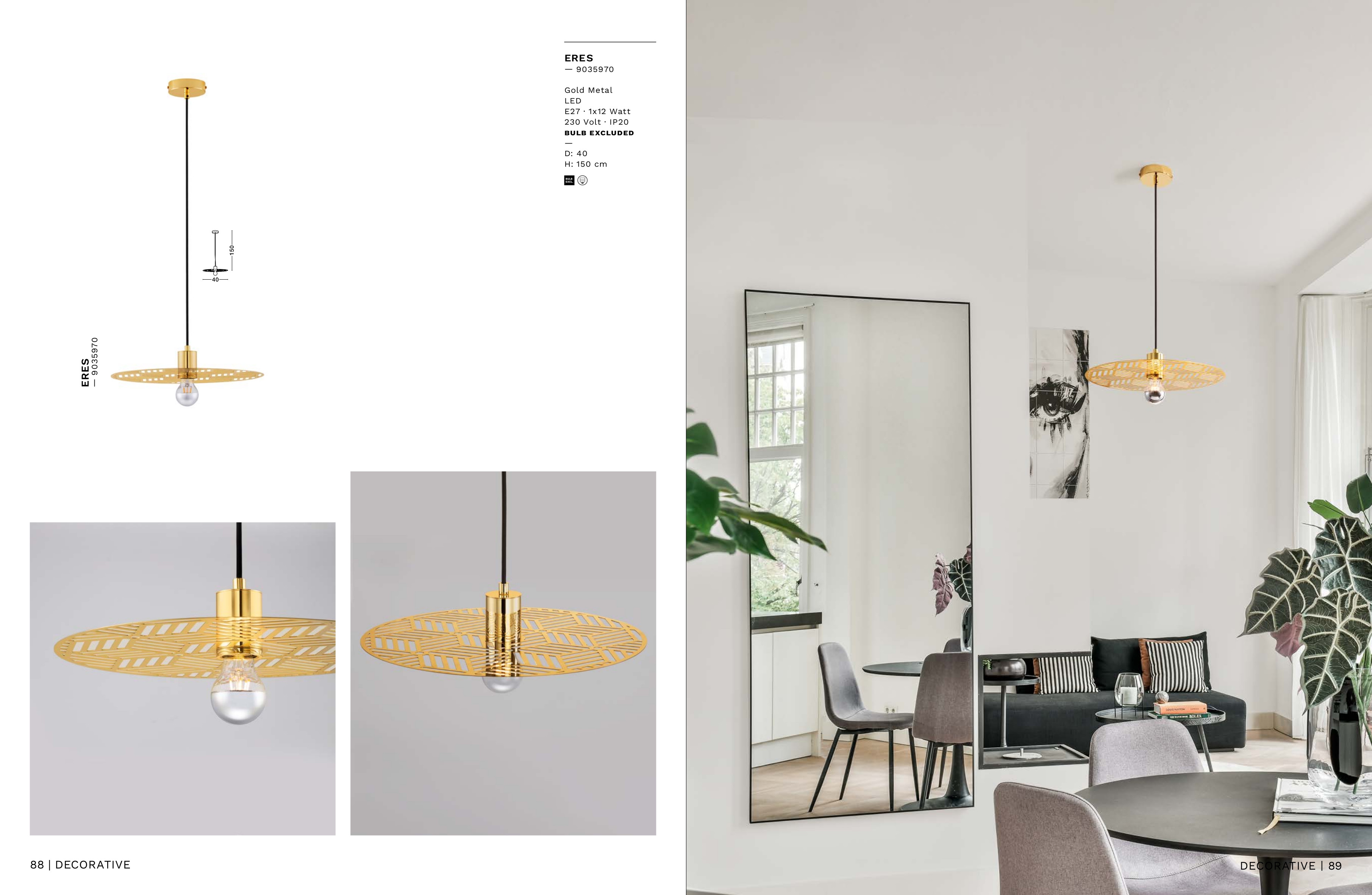 Стилът и естетиката на обстановката ще се обогатят благодарение, както на цялостната визия и дизайн на осветителното тяло, така и на вложените в изработката му, качествени материали, като: метал в цвят злато.