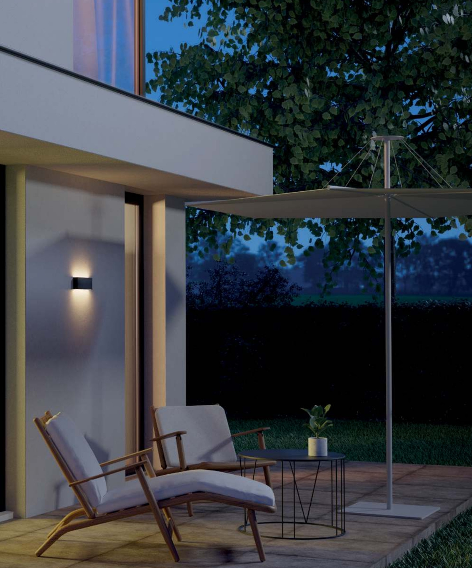 Осветителното тяло 90379 представлява аплик, външна лампа в съвременен стил. 90379 е от категорията осветителни тела и е подходящо за осветяване на различни помещения и пространства като: външно осветление, фасадно осветление.