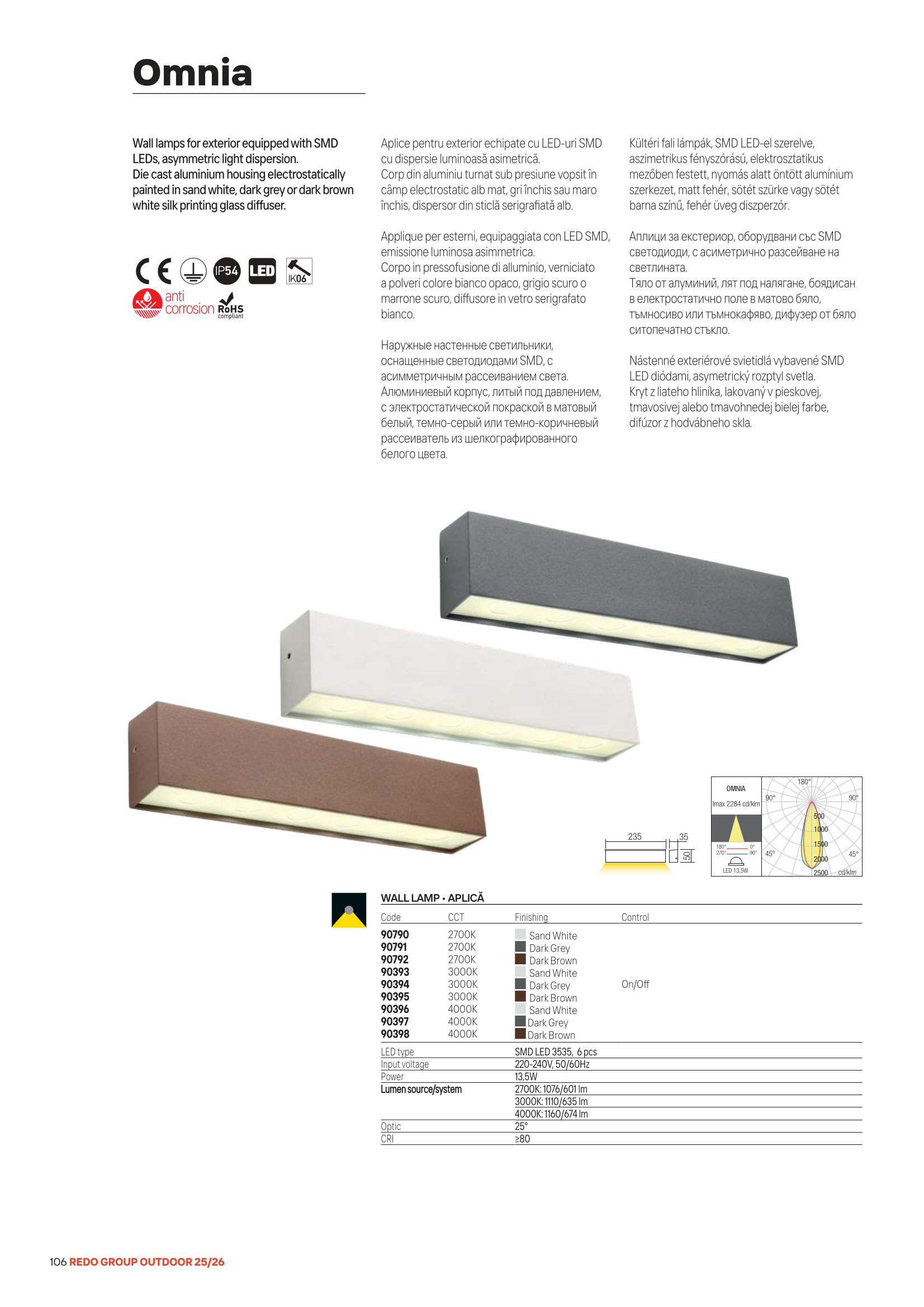 Ел. мощност 1 х 13.5 W Размери 23.5см x 5см x 3.5см Производител Redo, Румъния
