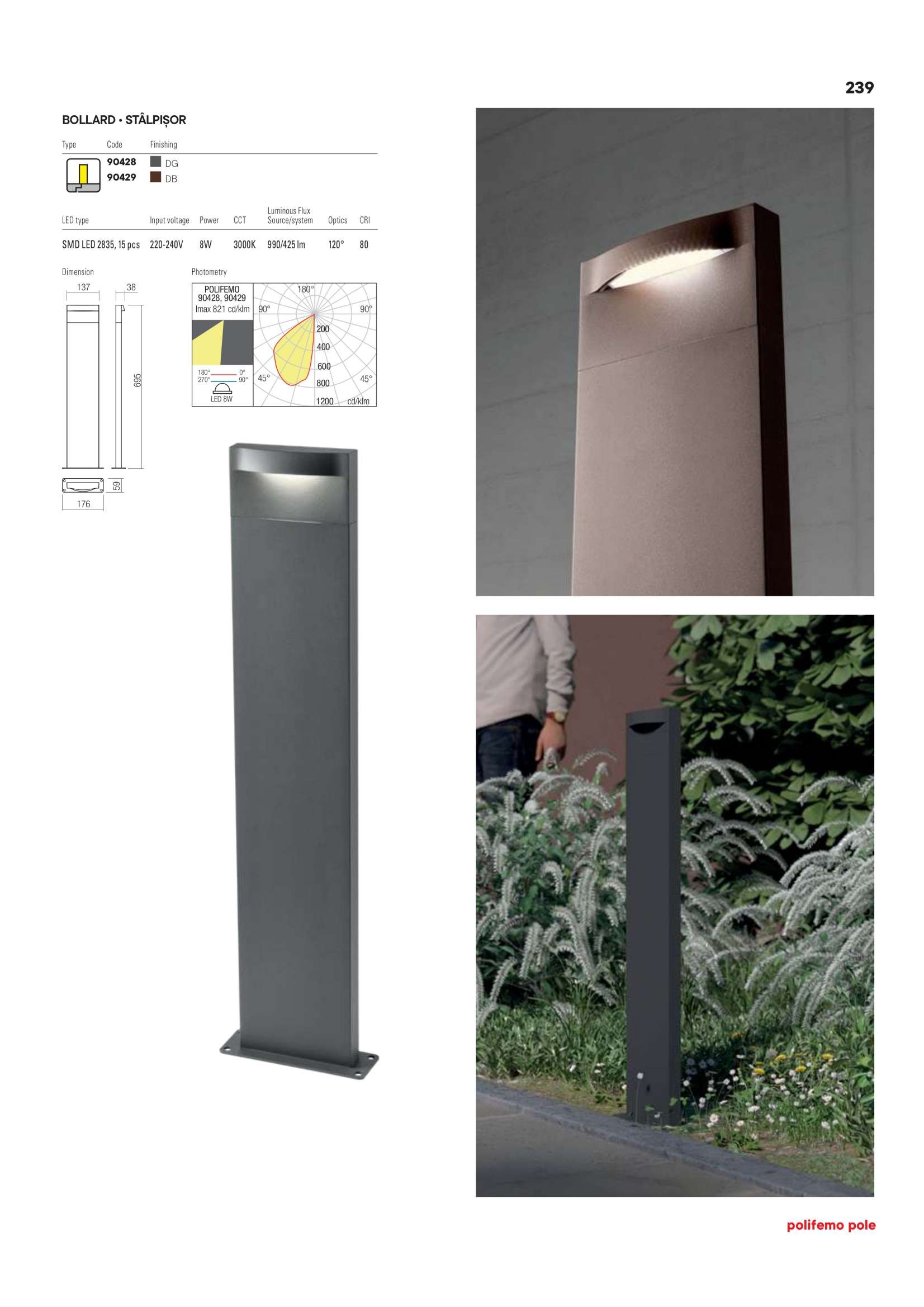 Осветителното тяло 90428 представлява външна лампа в съвременен стил. 90428 е от категорията осветителни тела и е подходящо за осветяване на различни помещения и пространства като: градинско осветление, външно осветление.
