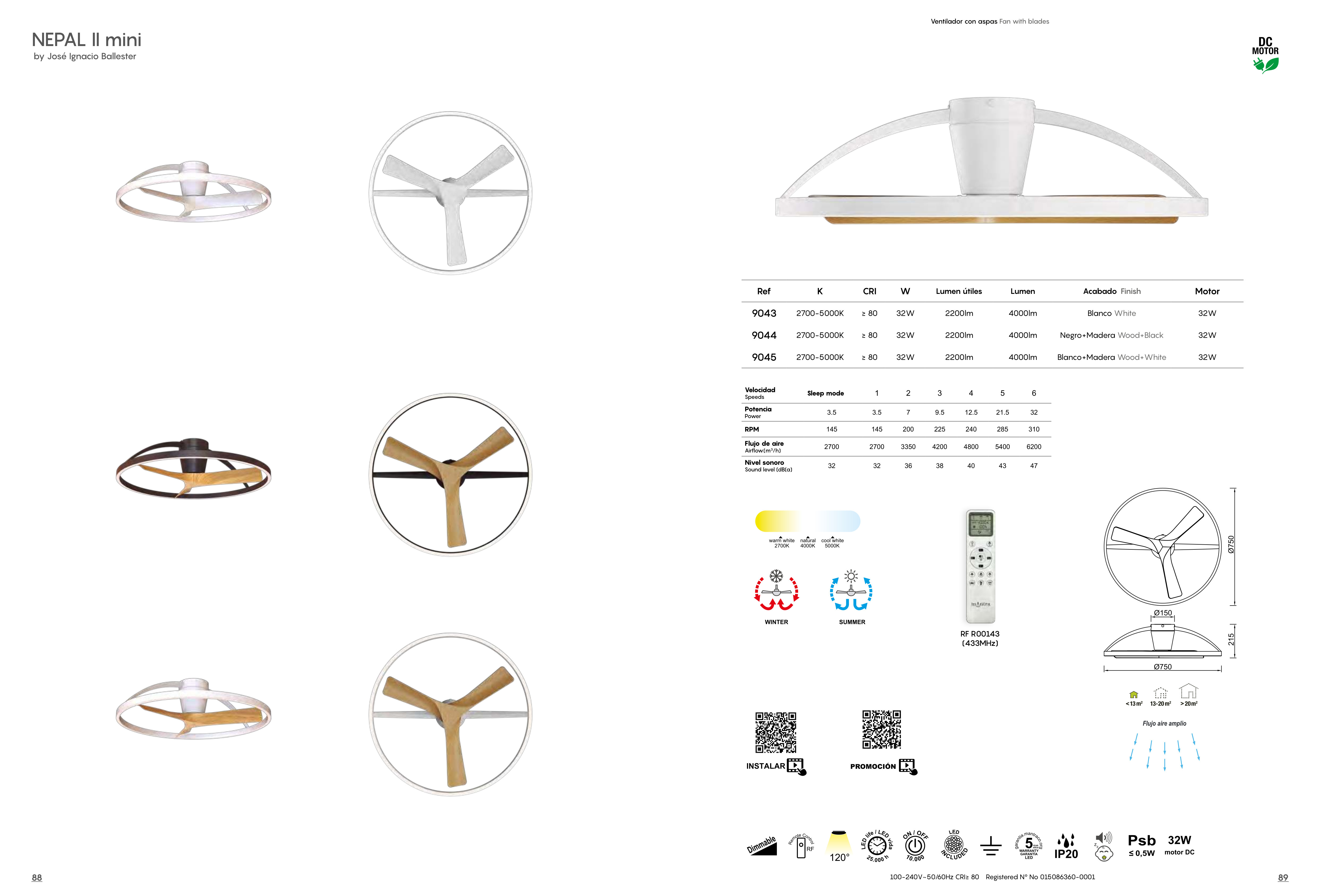 Лед плафон 9043 White 32W 2700K-5000K 2200lm NEPAL II mini ще осигури комфорт и естетика във всяко помещение, в което се постави. Цялостната визия и дизайн на led лампата и вложените в изработката й материали, като метал в бял цвят, полимер (ABS) в бяло, дифузьор от полимер в бяло, DC мотор 32W, димиране, смяна на цветната температура (2700К-5000К), посоката и скоростта на въртене чрез дистанционно, включено в комплекта, ще допринесат за един неповторим стил. Благодарение на дългогодишния опит в производството на лед осветление, качествените материали и строгия контрол на качеството на изработка на производителя Mantra (Испания), 9043 White 32W 2700K-5000K 2200lm NEPAL II mini е на високо европейско ниво.