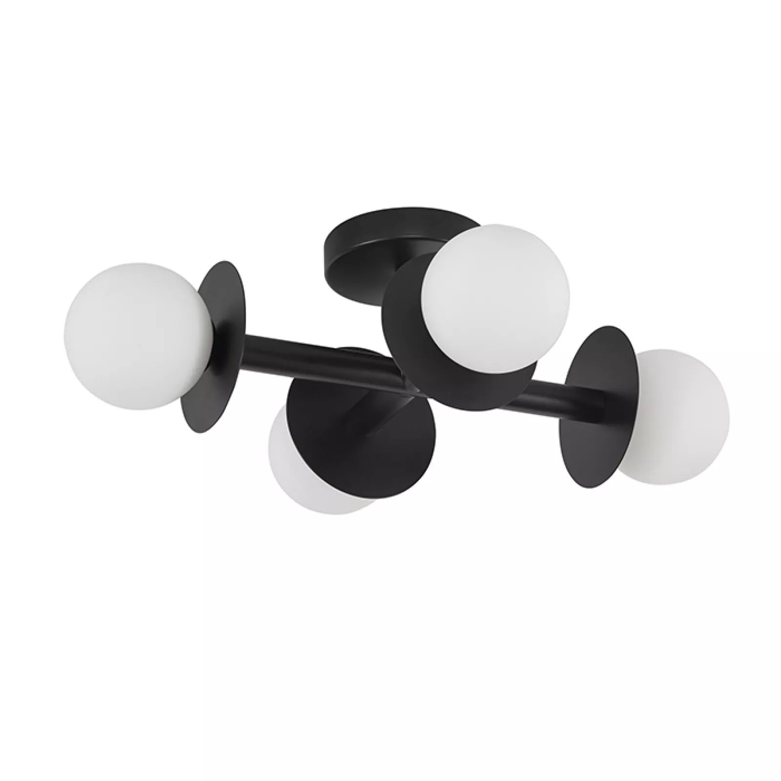 За стила и естетиката на интериора в изключително висока степен допринасят, както цялостната визия и дизайн на осветителното тяло, така и вложените в изработката висококачествени материали, като метал в матово черен цвят, стъкло в опалово бяло.