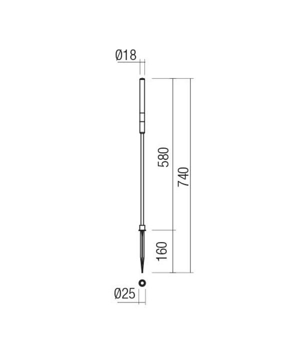 алуминий с нанесено, в електростатично поле, покритие в цвят ръжда, сатениран акрилен дифузер, доставя се с колче за наземен монтаж, 2m захранващ кабел и конектор с IP68, драйвърът DRW12W 240VAC - 24VDC се поръчва отделно и е за не-повече от 6 лампи