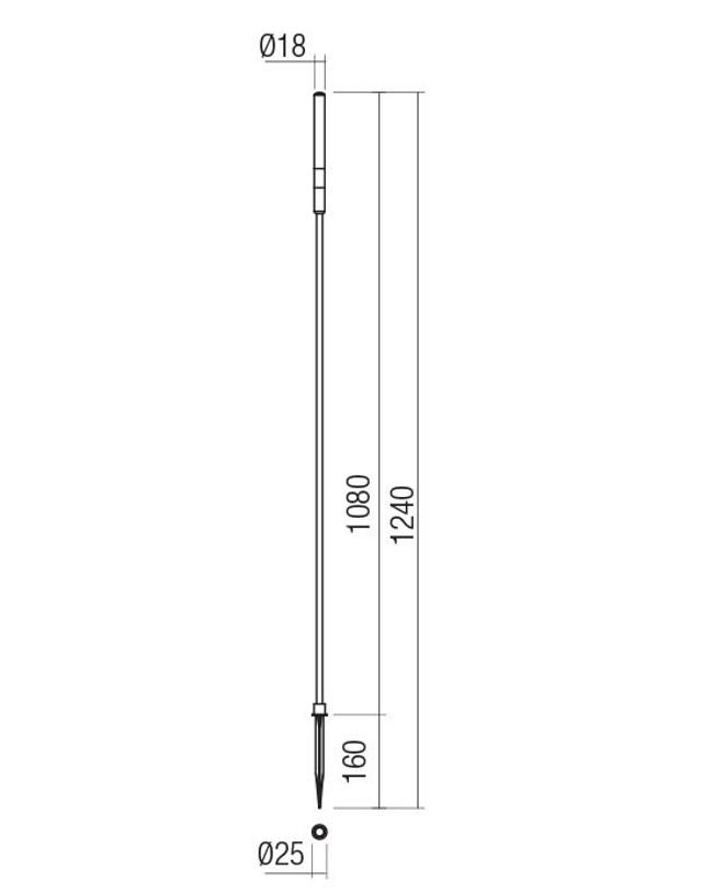 алуминий с нанесено, в електростатично поле, покритие в тъмно зелено, сатениран акрилен дифузер, доставя се с колче за наземен монтаж, 2m захранващ кабел и конектор с IP68, драйвърът DRW12W 240VAC - 24VDC се поръчва отделно и е за не-повече от 6 лампи
