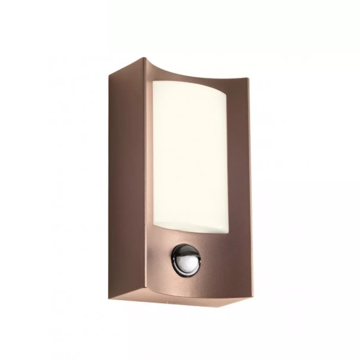 алуминий излят под налягане с електростатично нанесено покритие в цвят ръжда, дифузер от поликарбонат в опалово бяло, сензор за движение и здрач