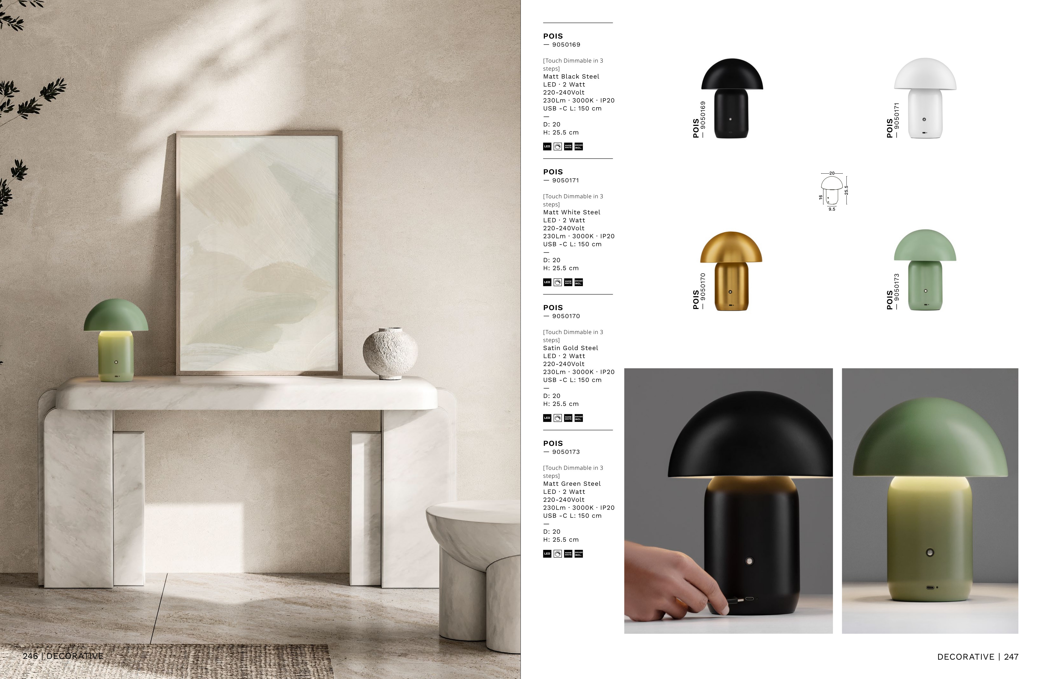 Лед настолна лампа 9050173 ще осигури комфорт и естетика във всяко помещение, в което се постави. Цялостната визия и дизайн на led лампата и вложените в изработката й материали, като стомана в цвят зелен мат, USB кабел 1.5m, ще допринесат за един неповторим стил. Благодарение на дългогодишния опит в производството на лед осветление, качествените материали и строгия контрол на качеството на изработка на производителя Nova-Luce (Гърция), 9050173 е на високо европейско ниво.