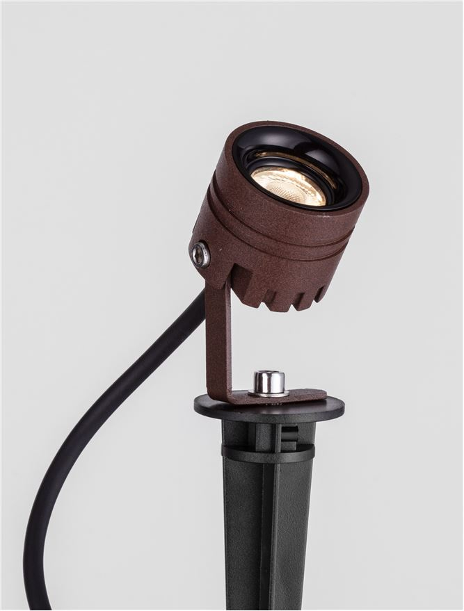 алуминий в цвят ръжда, полимер, ъгъл на светлината 45°, шип от полимер за земя включен в комплекта, 24 VDC с LED драйвър 9840106, който се купува отделно