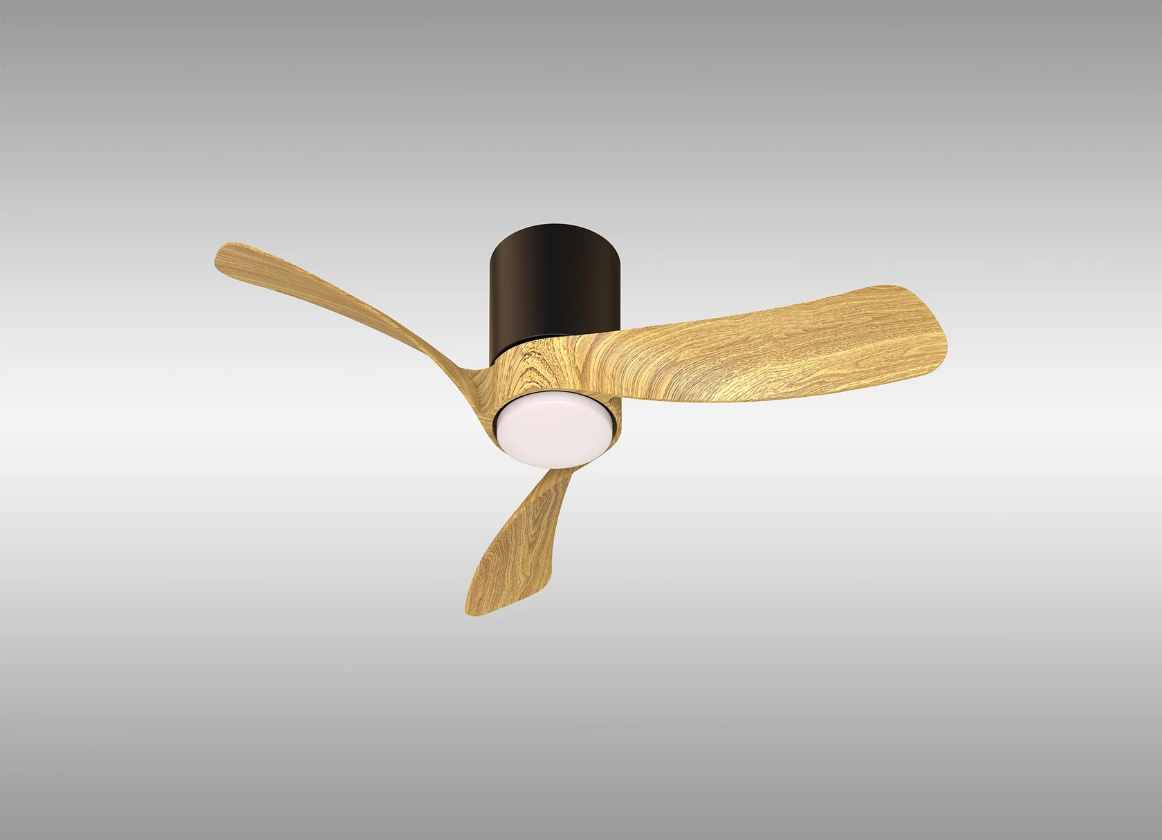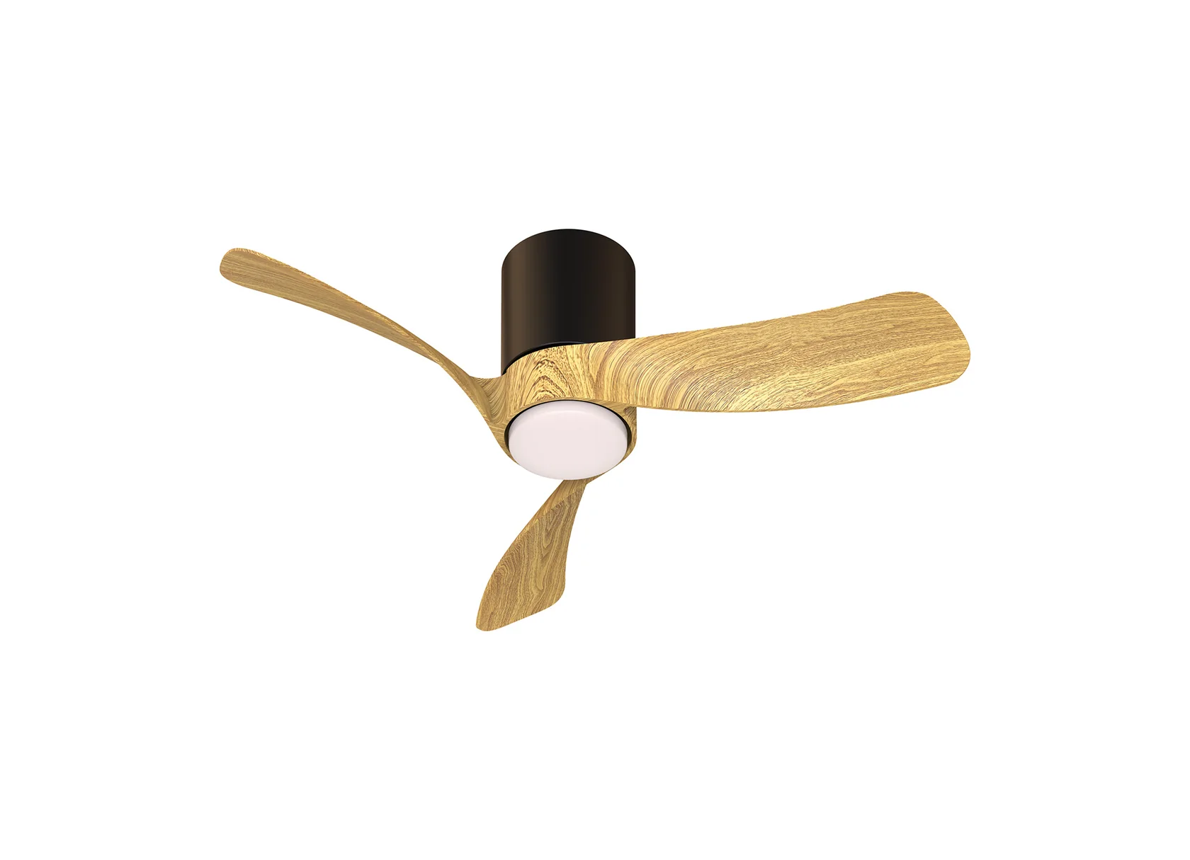 метал в черен цвят, дифузьор от силикон, перки от MDF в цвят дърво, дистанционно за управление на вентилатора, цветната температура и димиране, вентилатор с DC двигател 26W