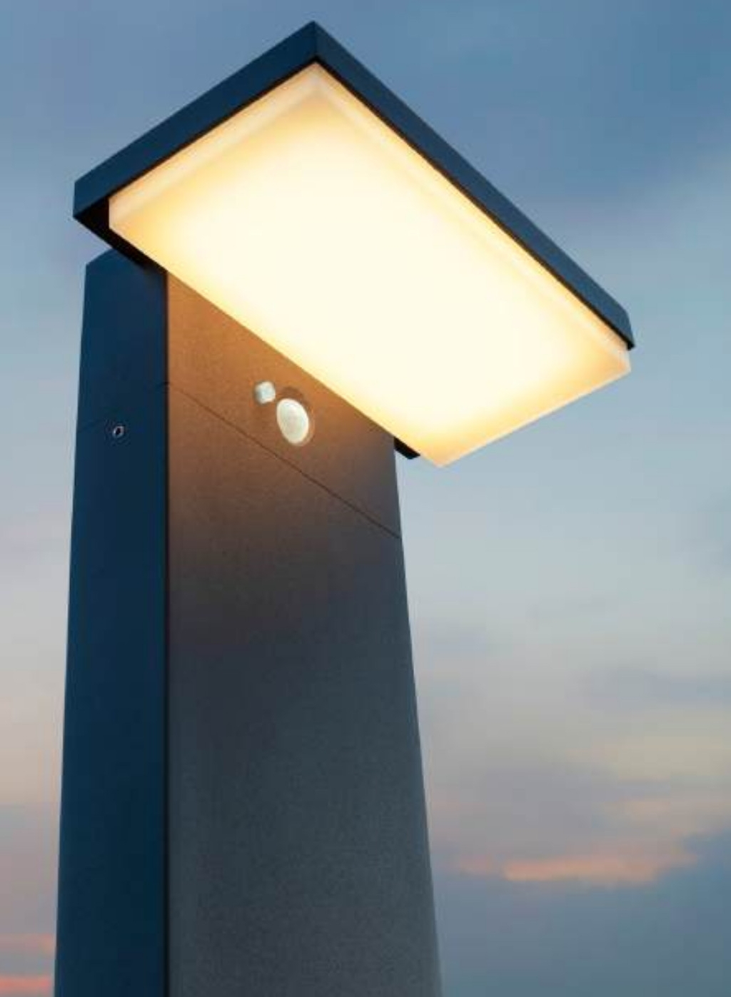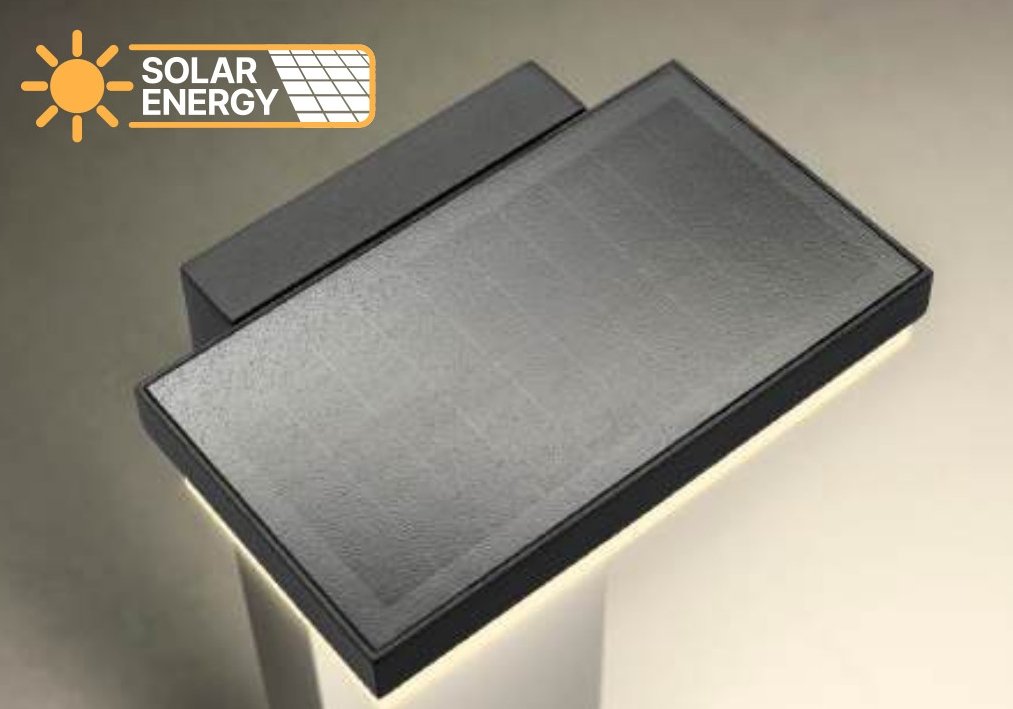 отлят алуминий в тъмно сиво, сатениран поликарбонатен дифузер, соларно осветително тяло със сензори за здрач и движение със соларен панел и Li-ion батерия 3,7V