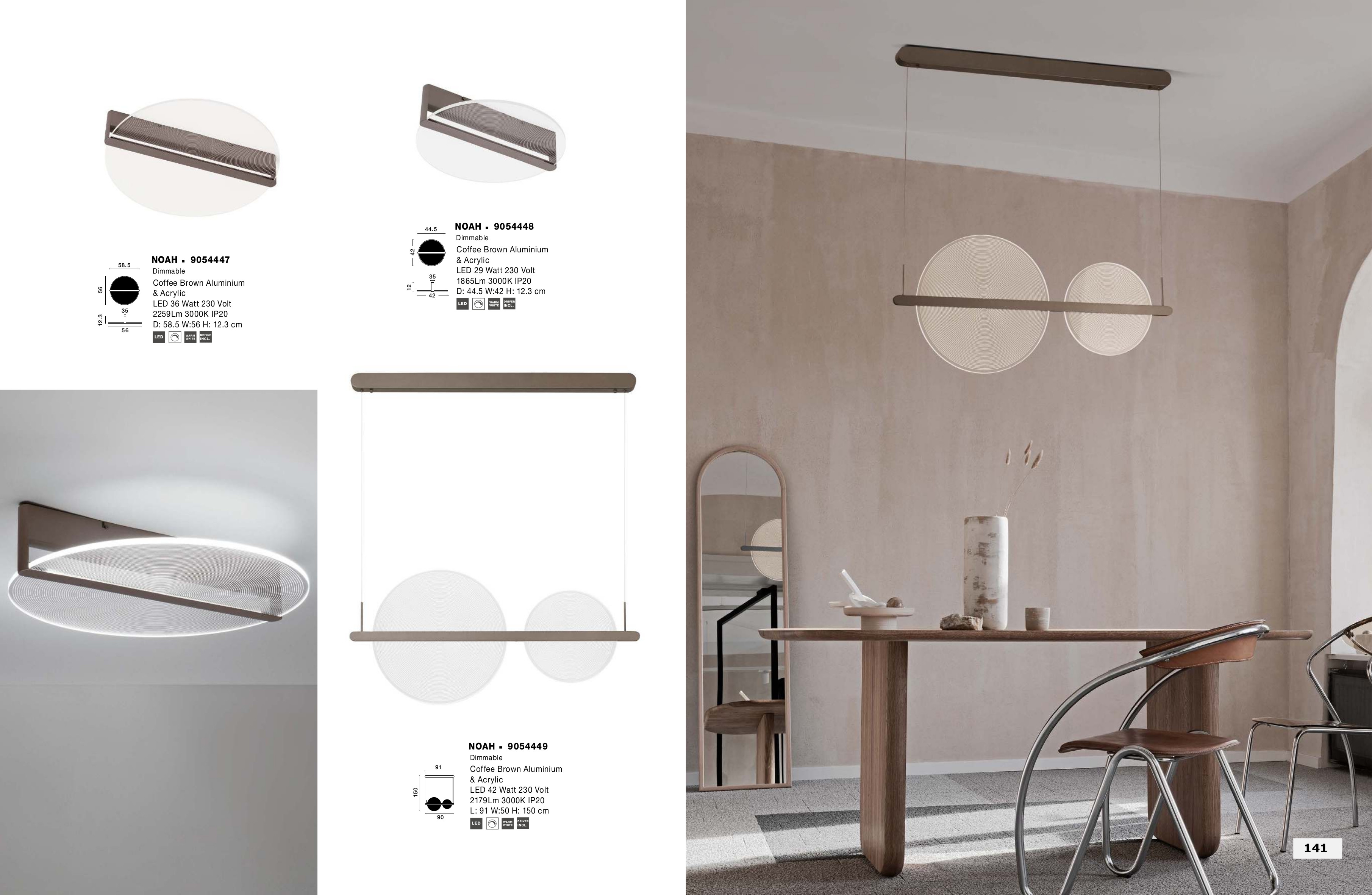 Лед плафон 9054447 ще осигури комфорт и естетика във всяко помещение, в което се постави. Цялостната визия и дизайн на led лампата и вложените в изработката й материали, като алуминий в цвят кафе, прозрачен сериграфиран полимер, ще допринесат за един неповторим стил. Благодарение на дългогодишния опит в производството на лед осветление, качествените материали и строгия контрол на качеството на изработка на производителя Nova-Luce (Гърция), 9054447 е на високо европейско ниво.