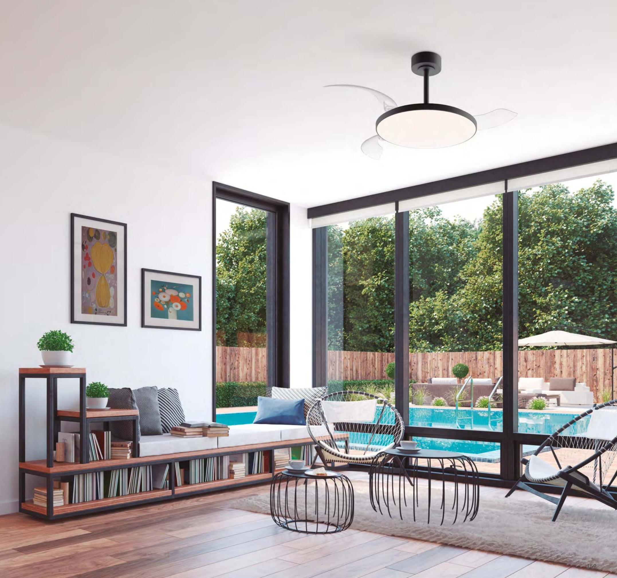 Лед плафон 9056 Black 50W 2700K-5000K 3000lm SLIM FAN MINI ще осигури комфорт и естетика във всяко помещение, в което се постави. Цялостната визия и дизайн на led лампата и вложените в изработката й материали, като полимер в черен цвят, прозрачни перки, контрол с дистанционно, DC двигател на вентилатора 25W, функция лято/зима, ССТ 2700-5000К, ще допринесат за един неповторим стил. Благодарение на дългогодишния опит в производството на лед осветление, качествените материали и строгия контрол на качеството на изработка на производителя Mantra (Испания), 9056 Black 50W 2700K-5000K 3000lm SLIM FAN MINI е на високо европейско ниво.