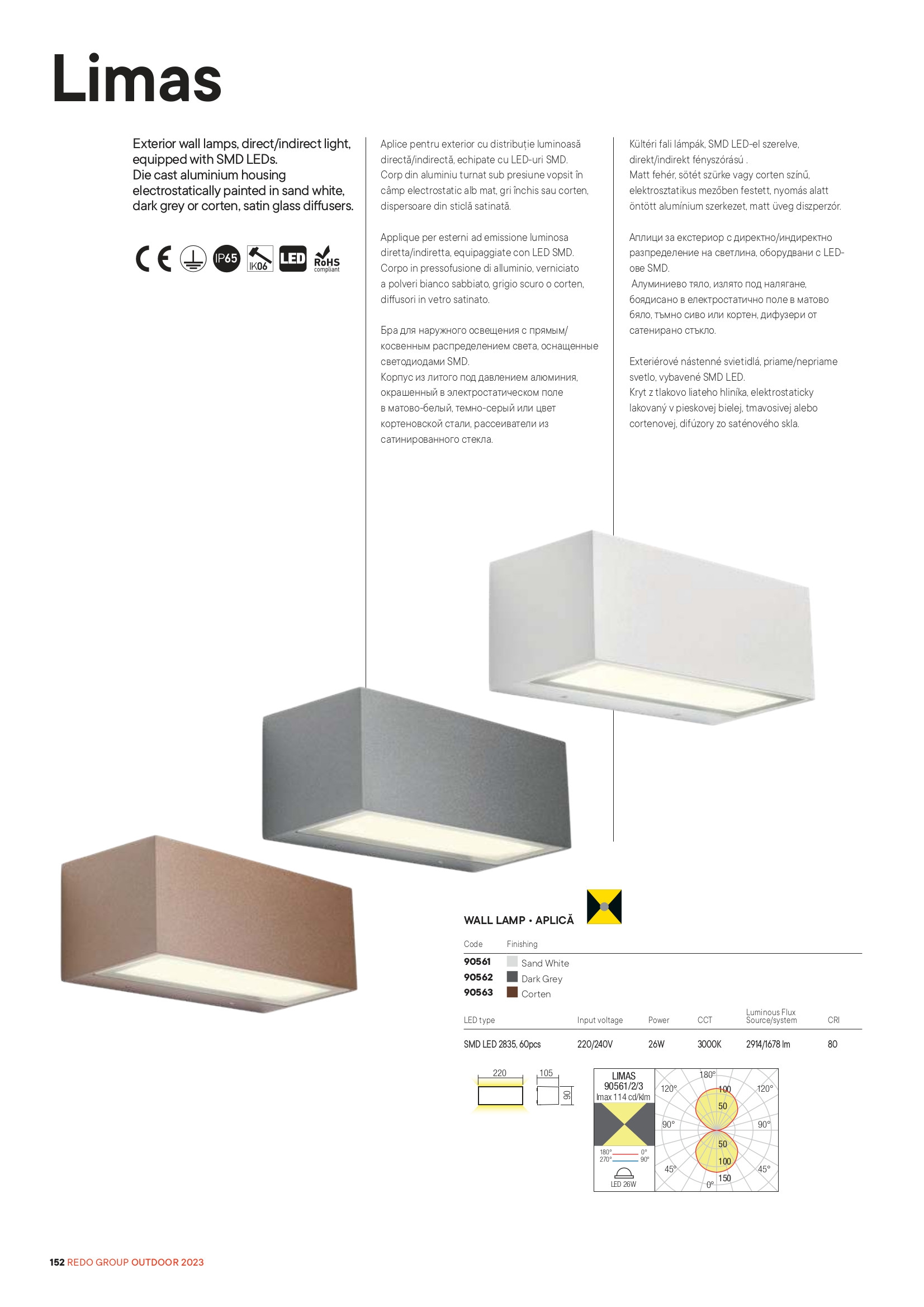 Осветителното тяло 90563 ще осигури комфорт и естетика във всяко помещение, в което се постави. Цялостната визия и дизайн на лампата и вложените в изработката й материали, като алуминиево тяло отлято под налягане с електростатично нанесено покритие в матово бяло, дифузери от сатенирано стъкло, ще допринесат за един неповторим стил. Благодарение на дългогодишния опит, качествените материали и строгия контрол на качеството на изработка на дизайнерската линия Redo Outdoor на производителя Redo (Румъния), 90563 е на високо европейско ниво.